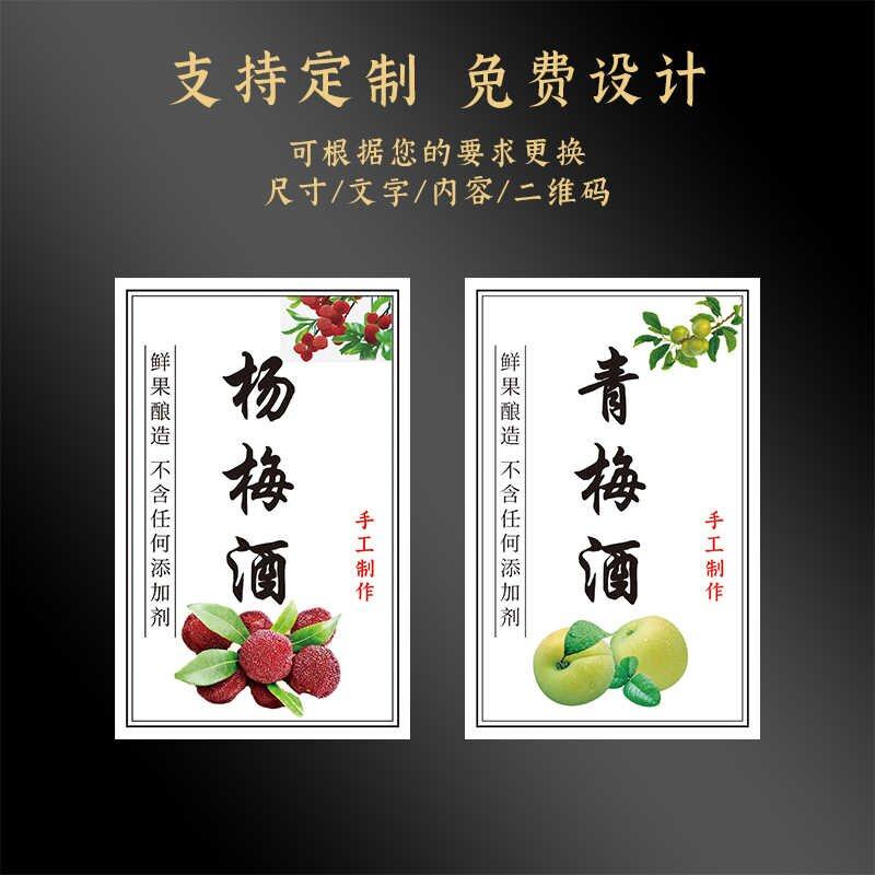 果酒自酿酒通用不干胶青梅酒杨梅酒荔枝酒杨梅酒PVC防水标签贴纸