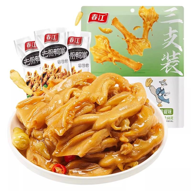 春江泡椒鸭掌柠檬酸辣味广西特产鸭爪网红零食开袋即食独立包装