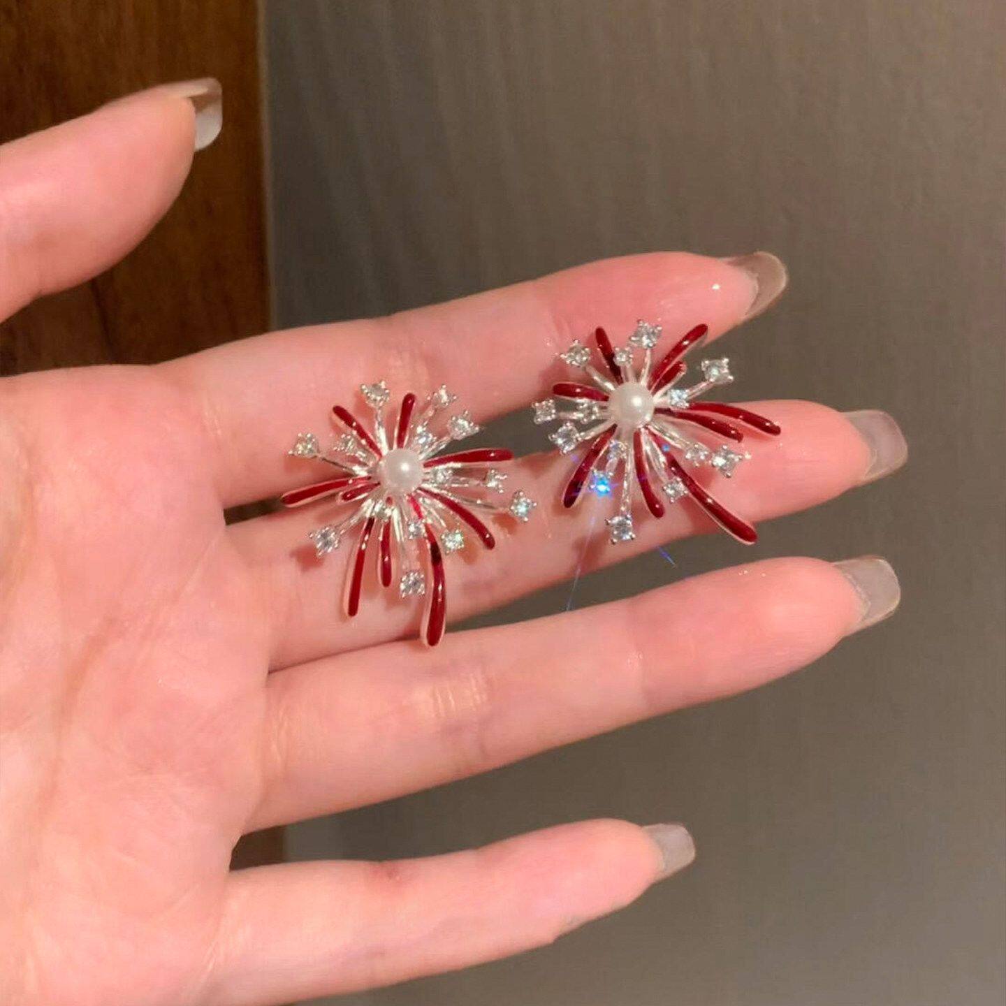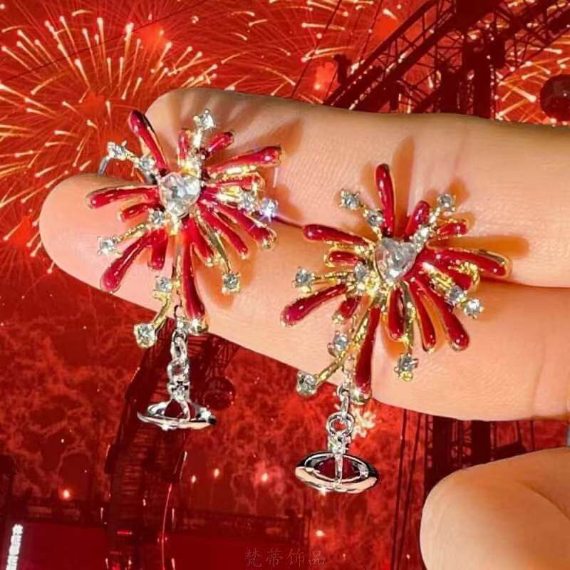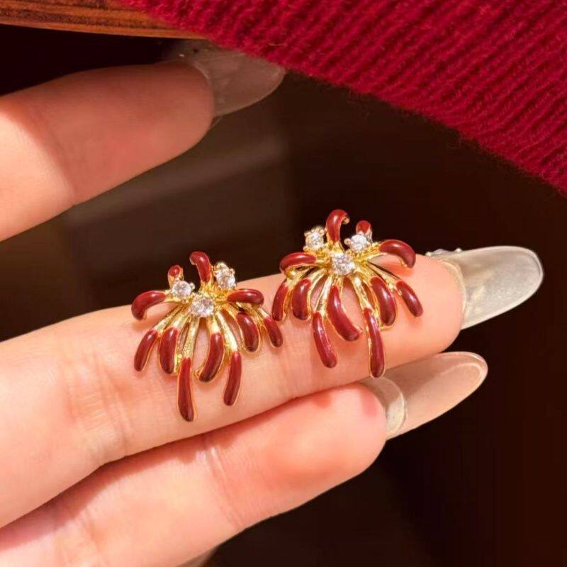 流光溢彩!超闪烟花红色耳钉高级感本命年2026过新年氛围感耳饰女