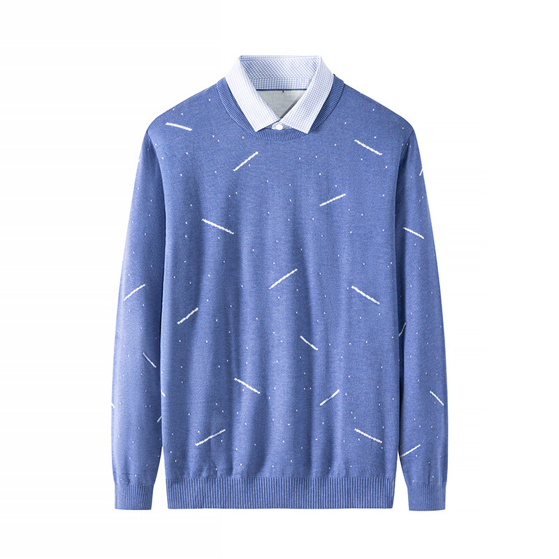 红蜻蜓中年男士毛衣加绒加厚假两件新款保暖内搭爸爸装针织打底衫