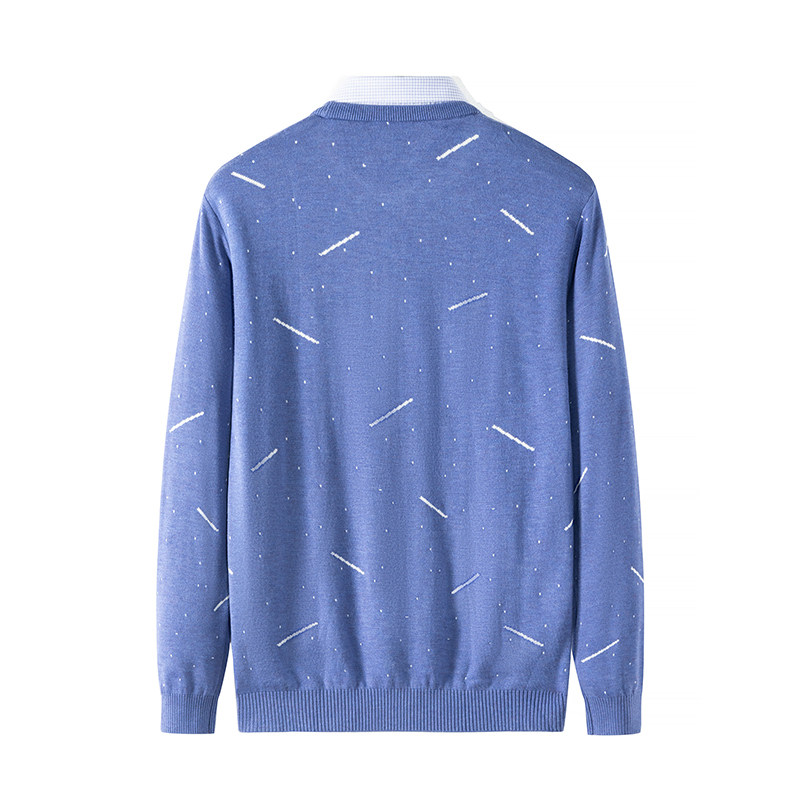 红蜻蜓男士假两件毛衣加绒加厚冬季新款休闲保暖爸爸装针织打底衫