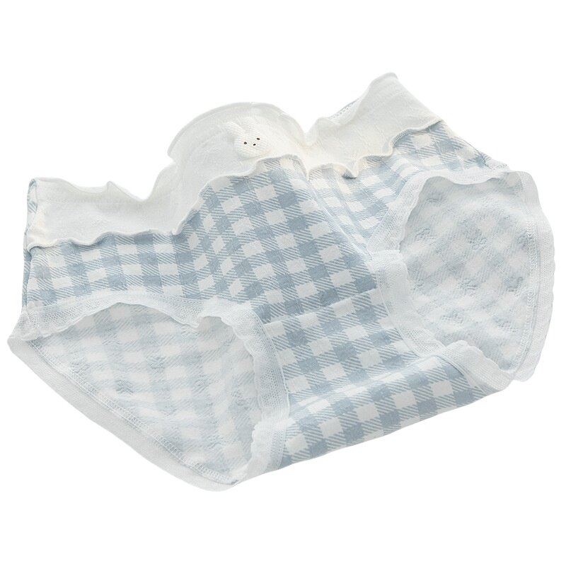 可爱纯棉A类女生内裤中腰镂空蝴蝶结透气木耳边绿色抗菌甜美舒适