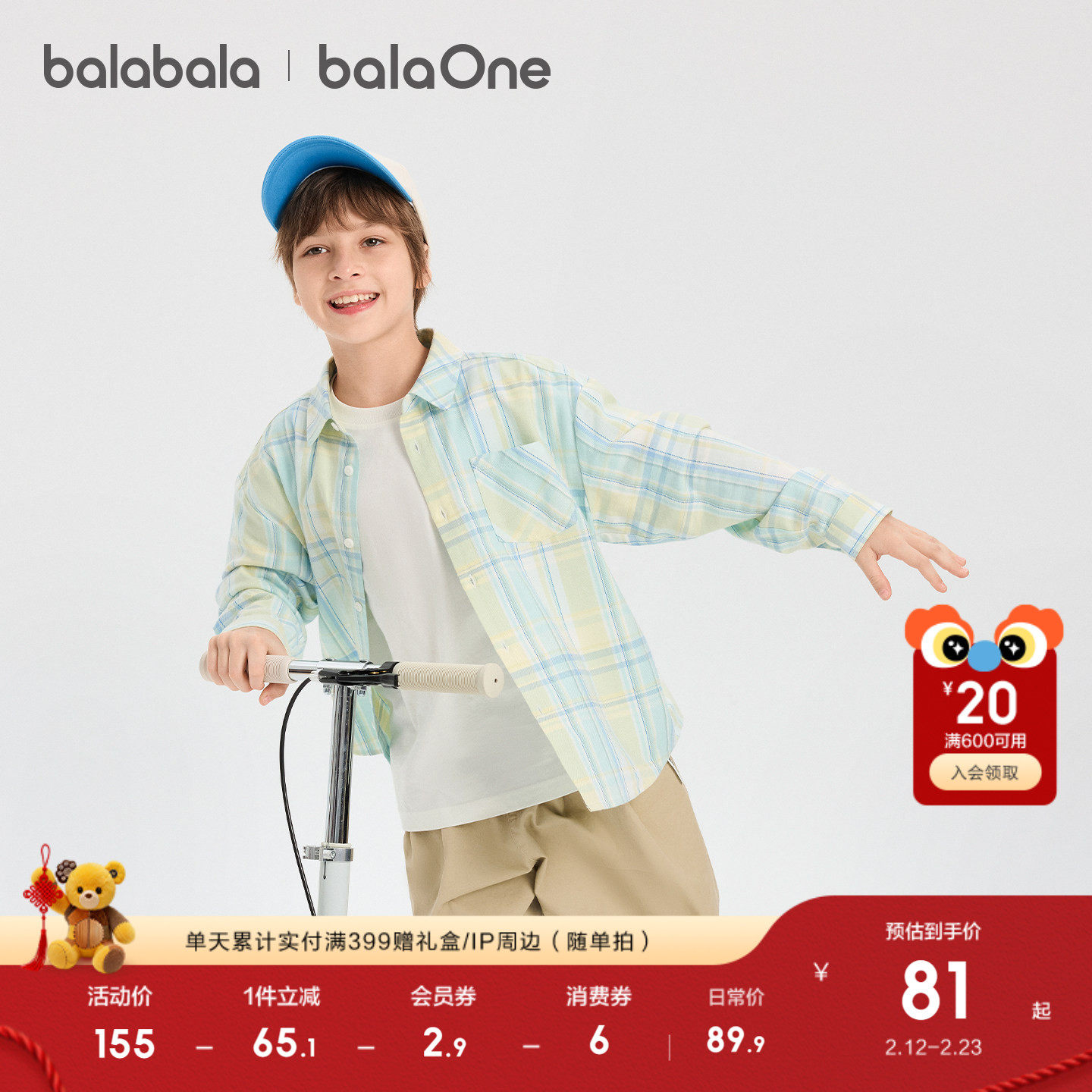 巴拉巴拉童装儿童长袖衬衫宝宝女童男童2026新款春装宽松格纹百搭