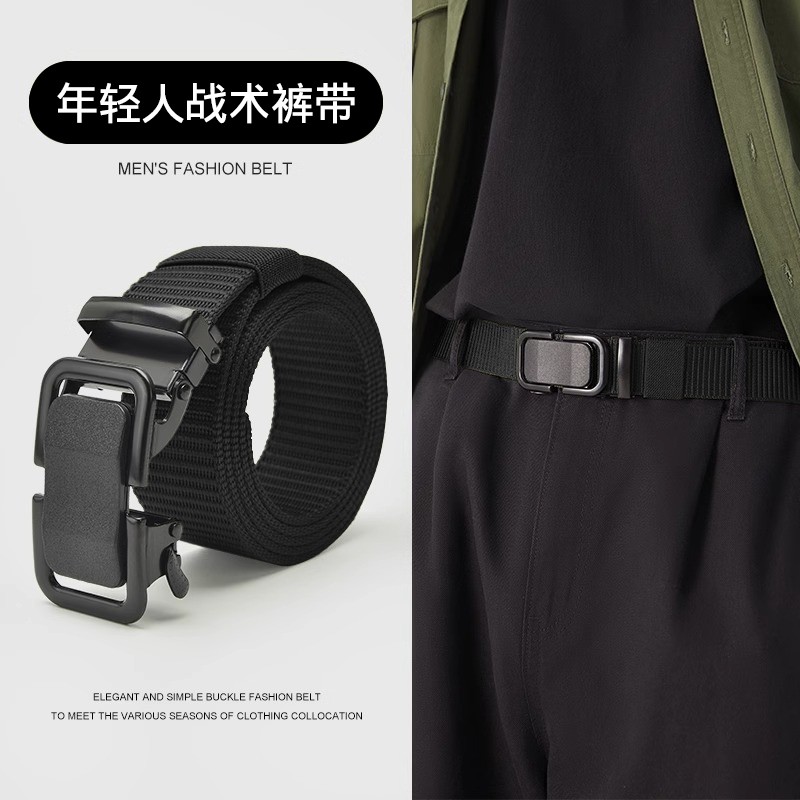 对插扣弹力皮带男自动扣时尚百搭潮流男士腰带户外尼龙帆布裤腰带