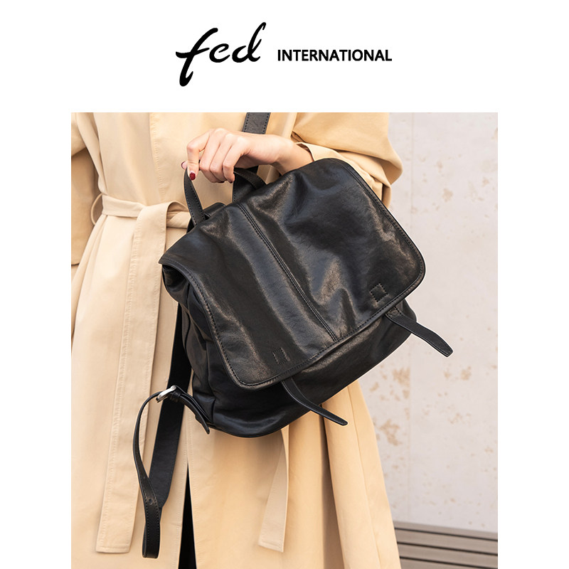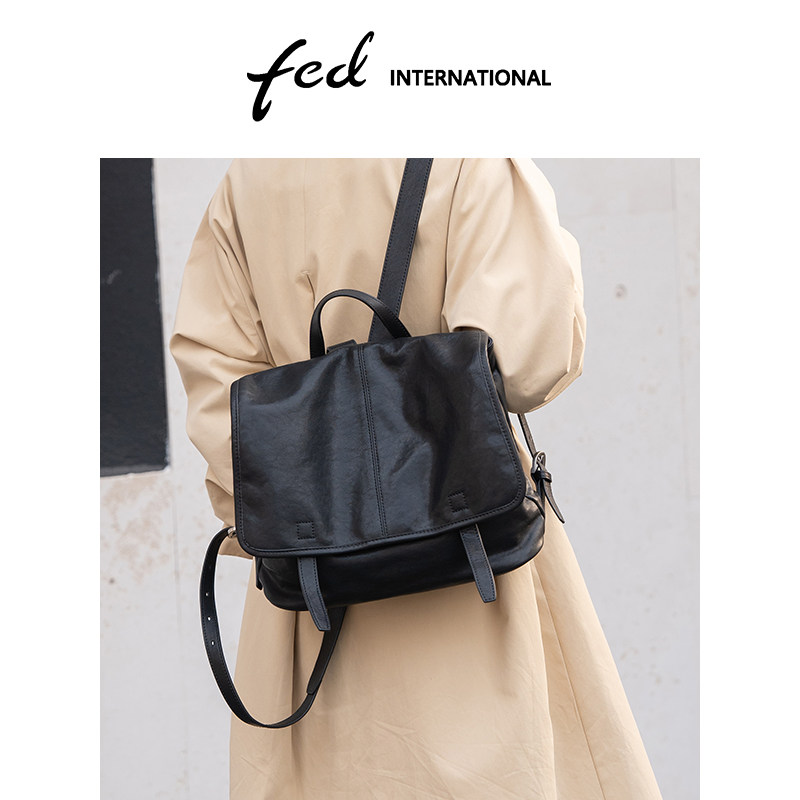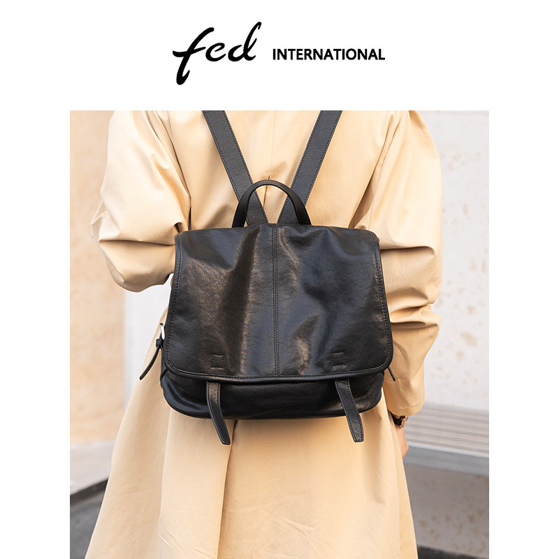 fed植鞣皮头层牛皮真皮女包手提旅游休闲背包大容量双肩包BFA7039