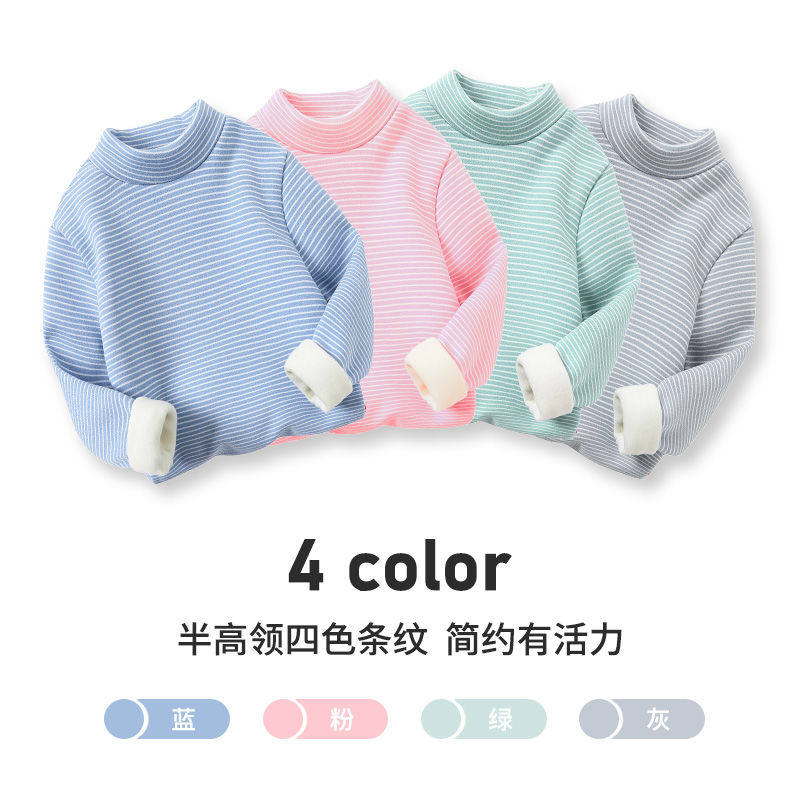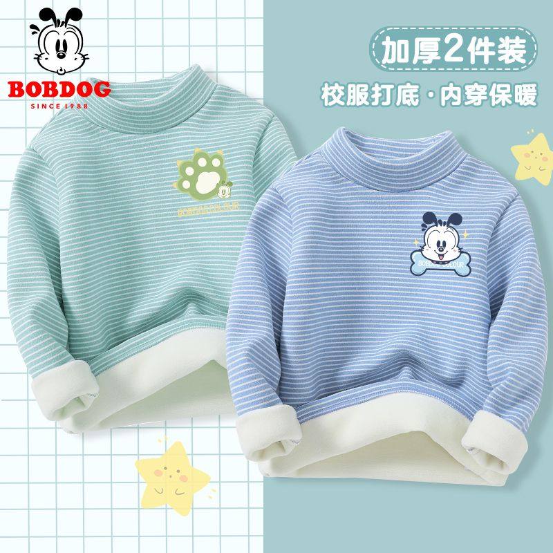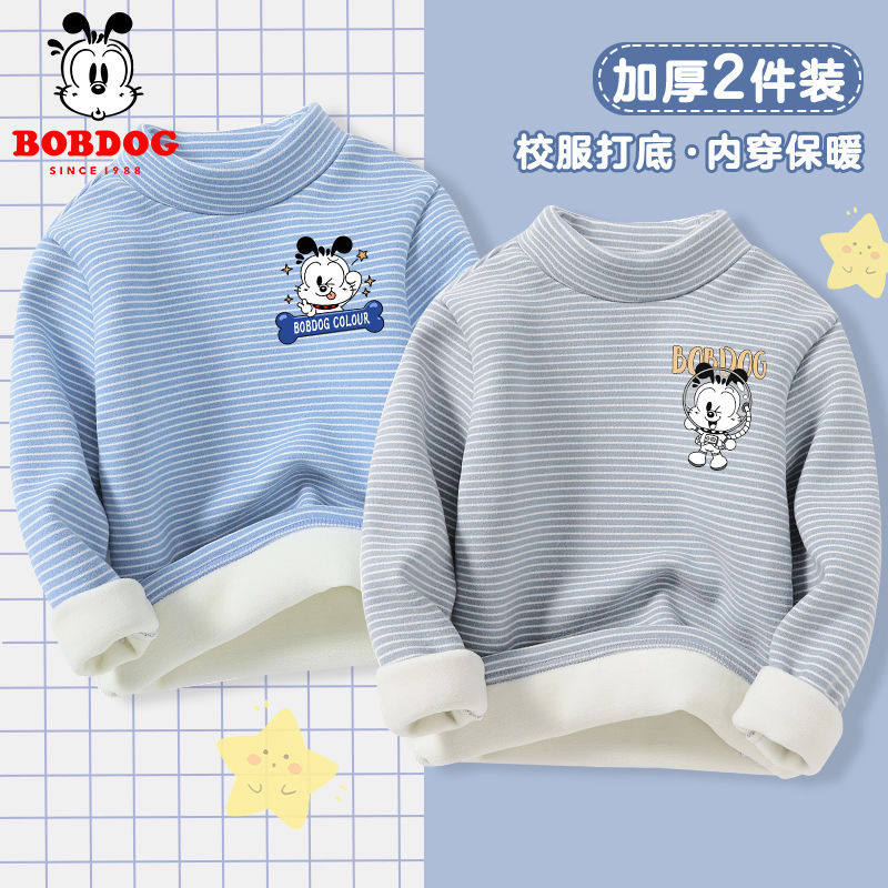 巴布豆男童德绒打底衫加绒保暖内衣秋冬2025儿童内搭加厚冬装条纹