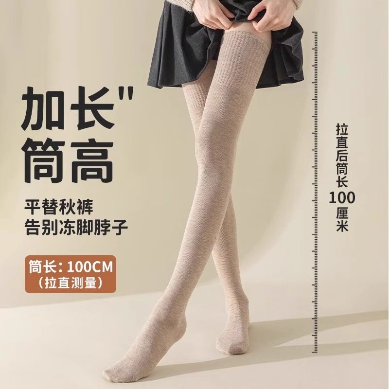 羊毛过膝袜女秋冬款羊绒长筒袜加绒加厚保暖大码孕妇坐月子大腿袜