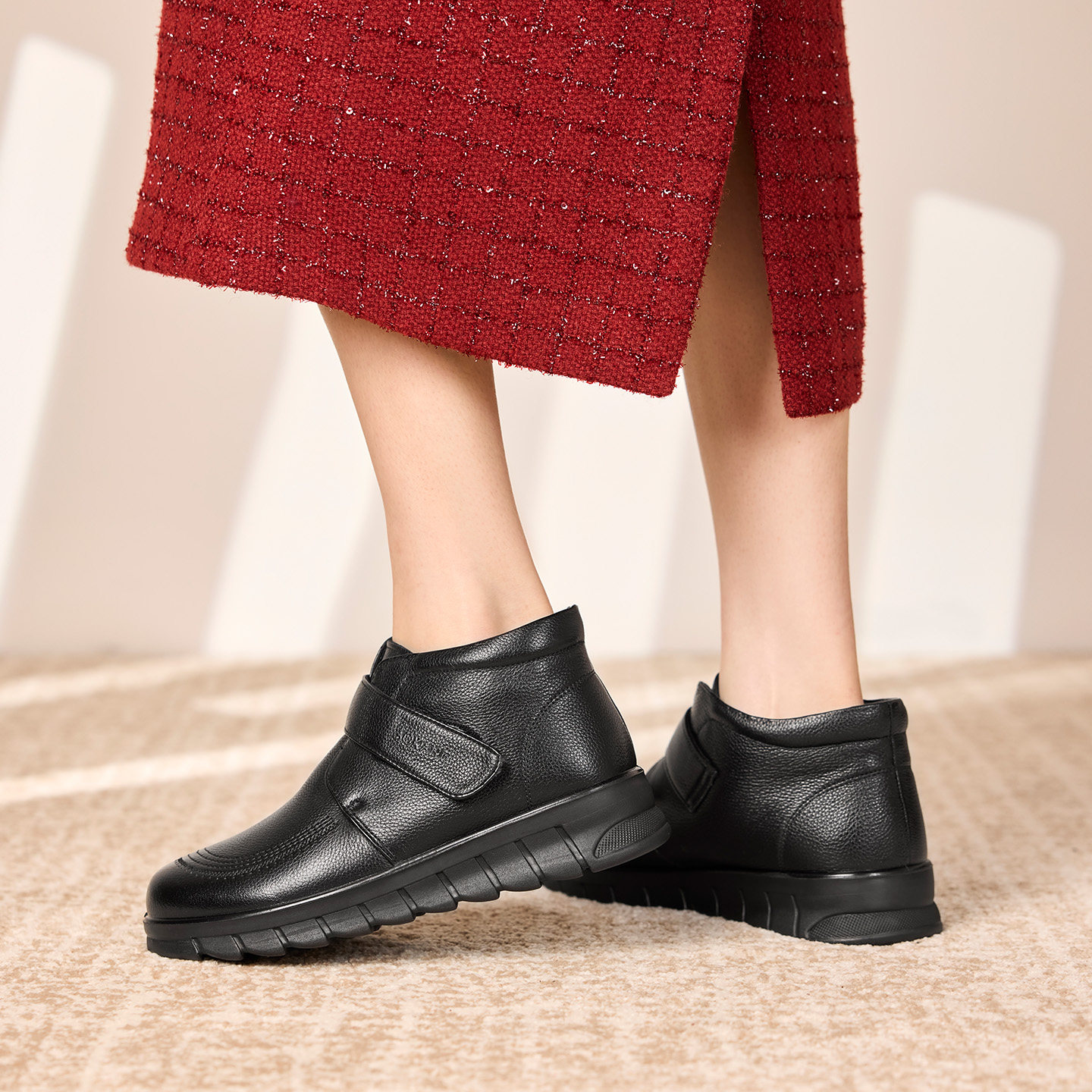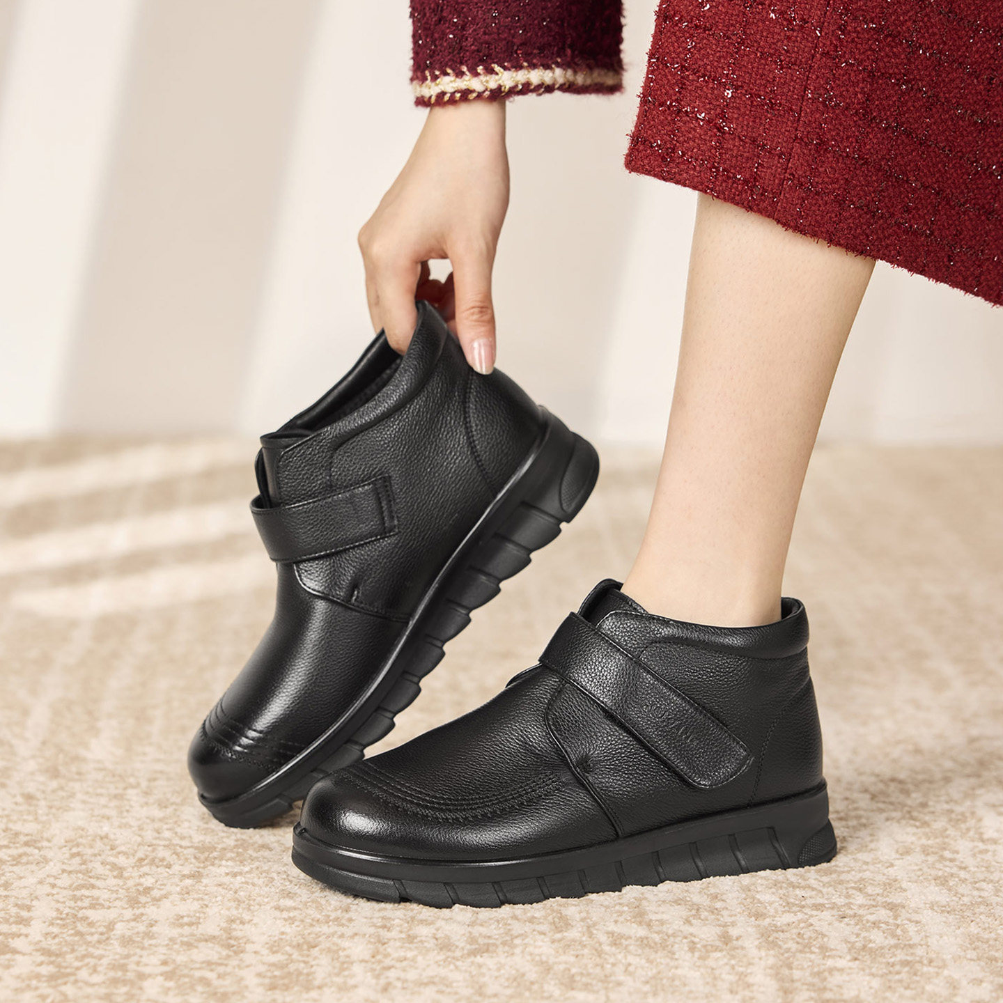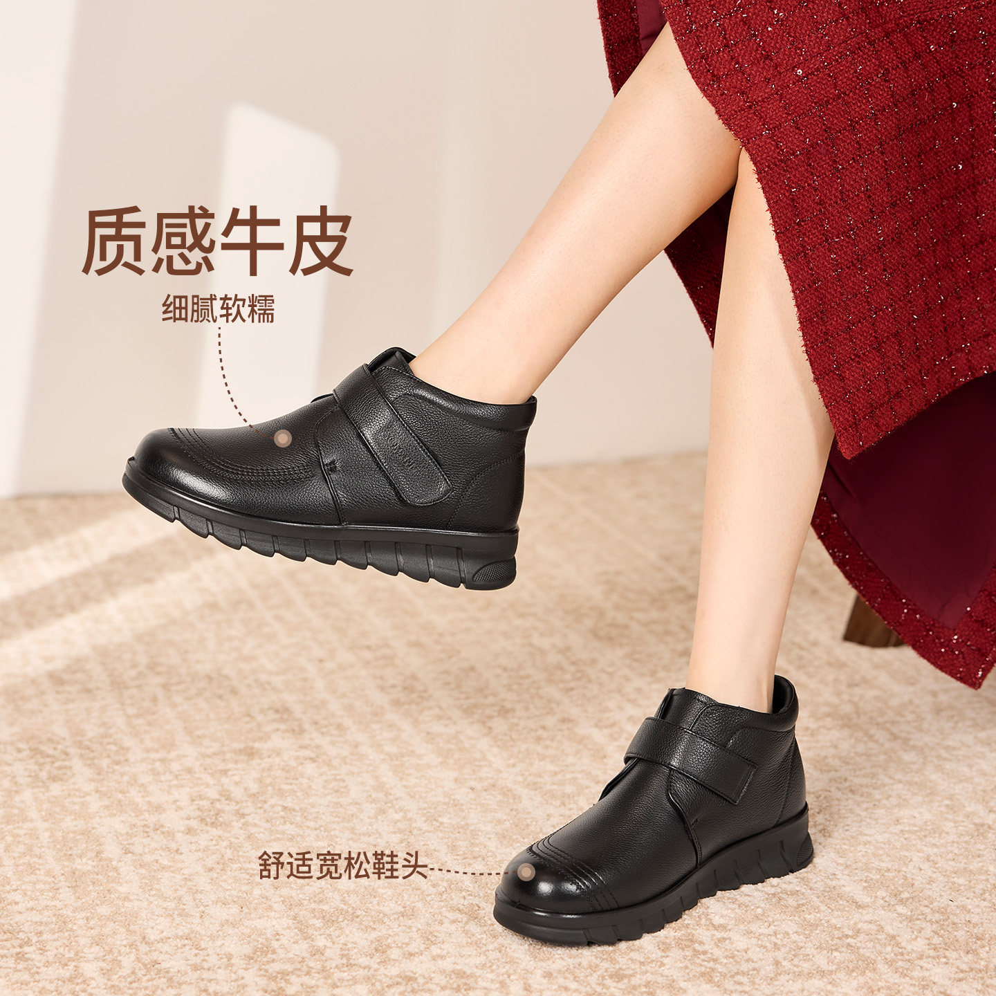 奥康 女鞋2025冬季妈妈鞋皮鞋防滑保暖中老年人真皮棉鞋门店发货