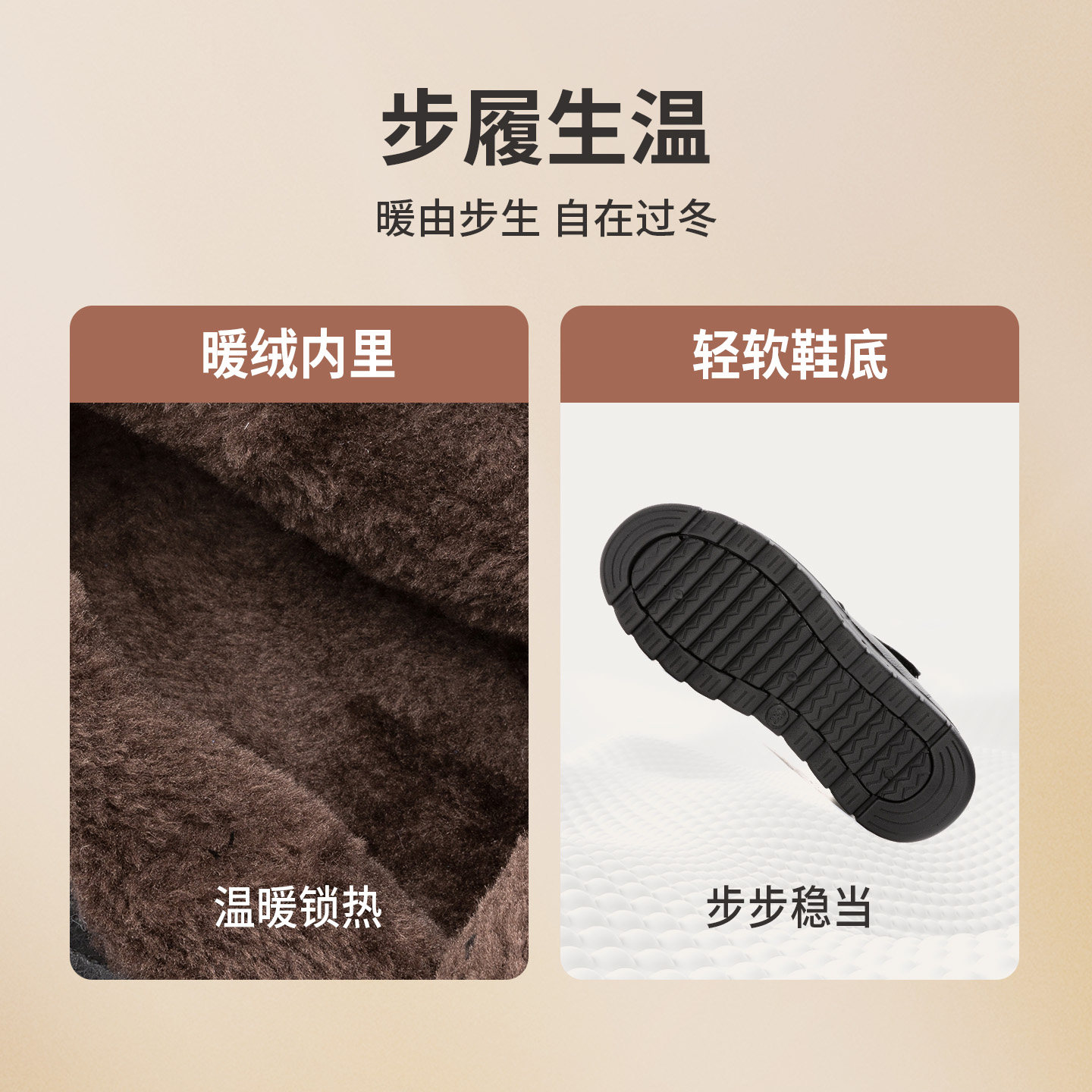 牛皮~骄屿复古圆头雪地靴加绒保暖毛毛棉靴两穿平底棕色勃肯短靴
