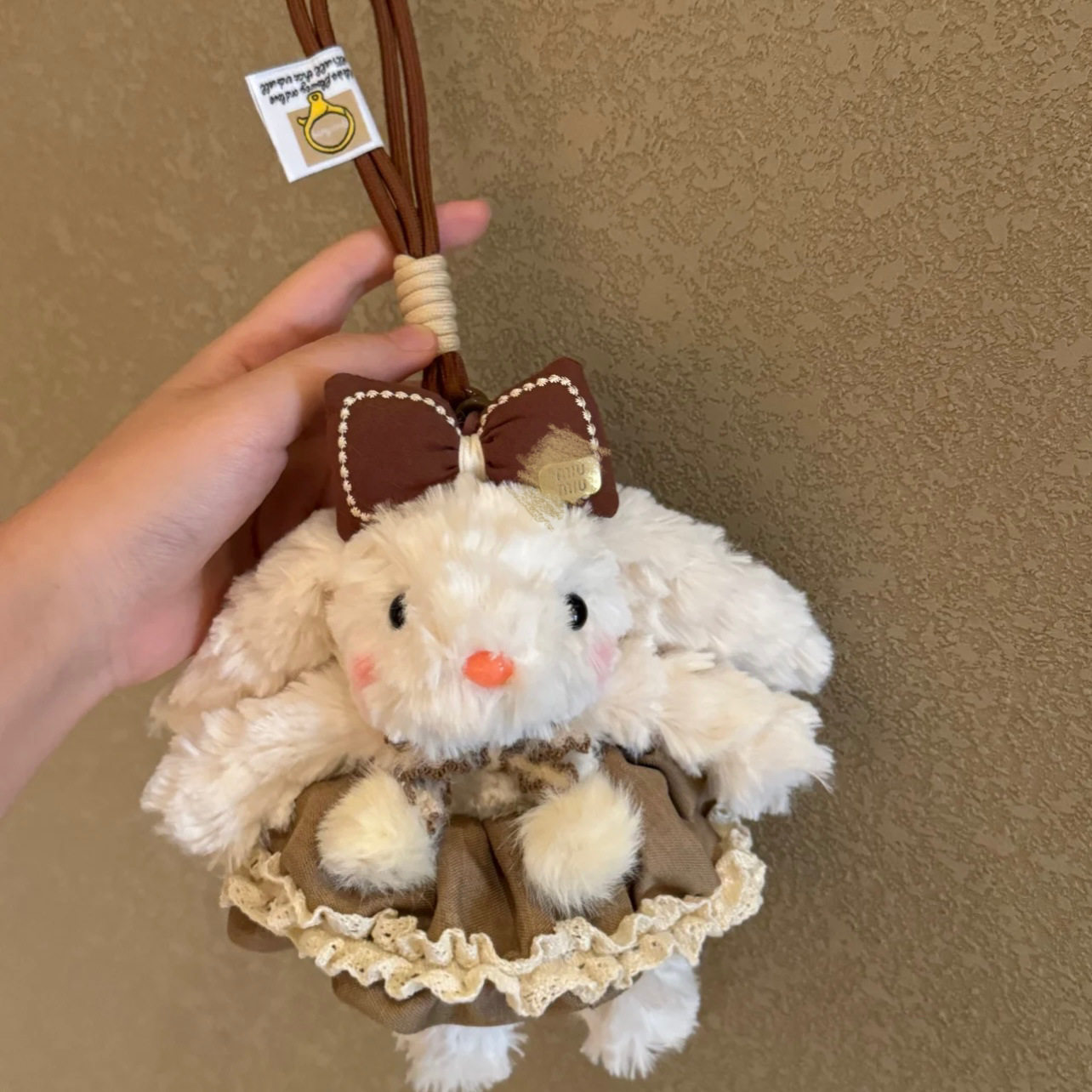 蕾丝咖裙垂耳兔子包包挂件百搭卡通毛绒可爱玩偶美拉德钥匙扣礼物