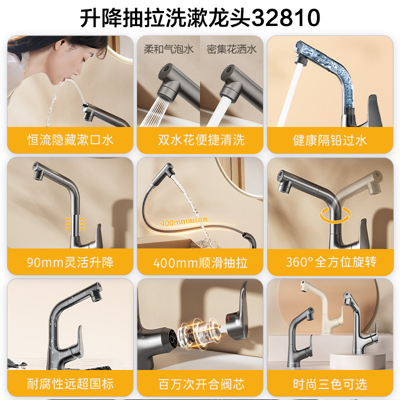 九牧抽拉面盆水龙头家用卫生间冷热可升降伸缩洗手台盆洗脸32810