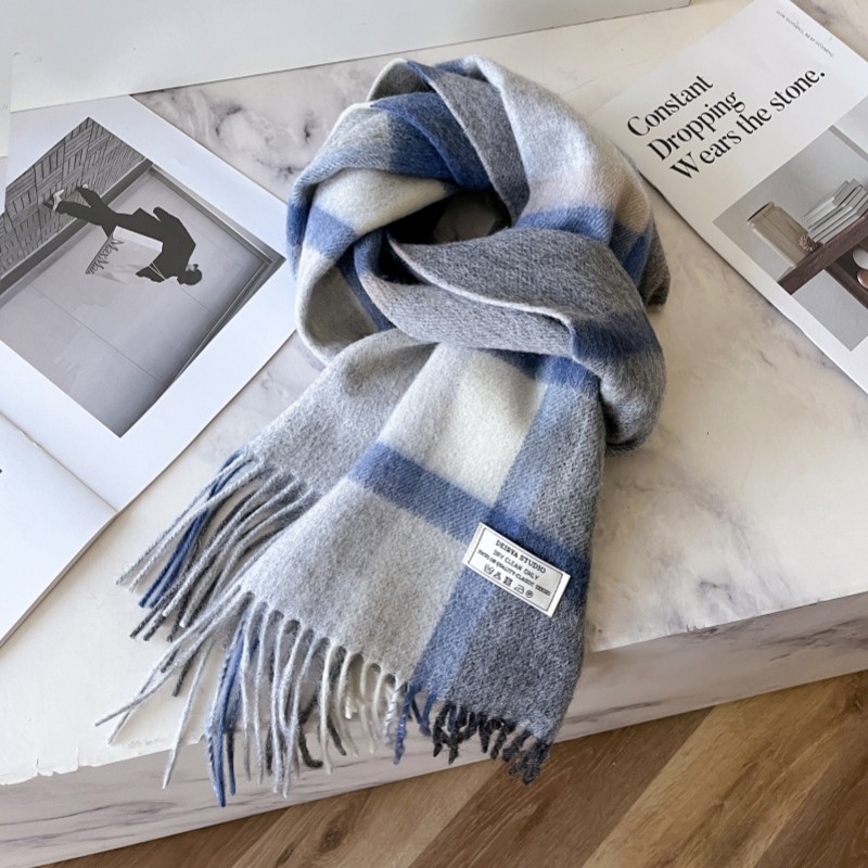 围巾100%纯羊毛格子女士高级感保暖披肩新款围脖生日礼物新年格纹