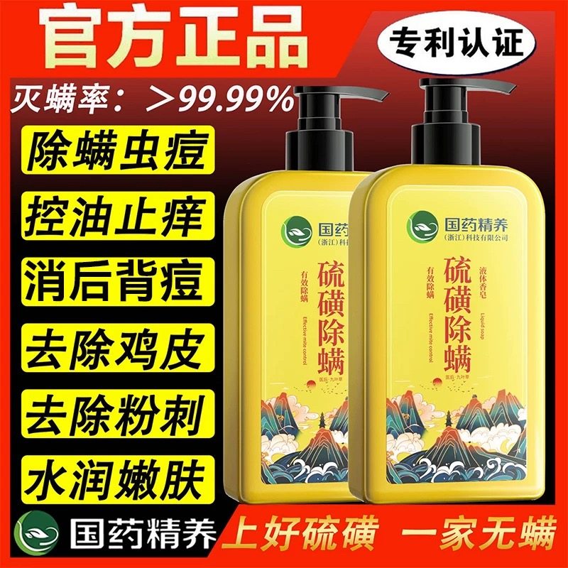 国药硫磺除螨沐浴露后背止痒清洁液体皂男女滋润润肤背部抑菌保湿