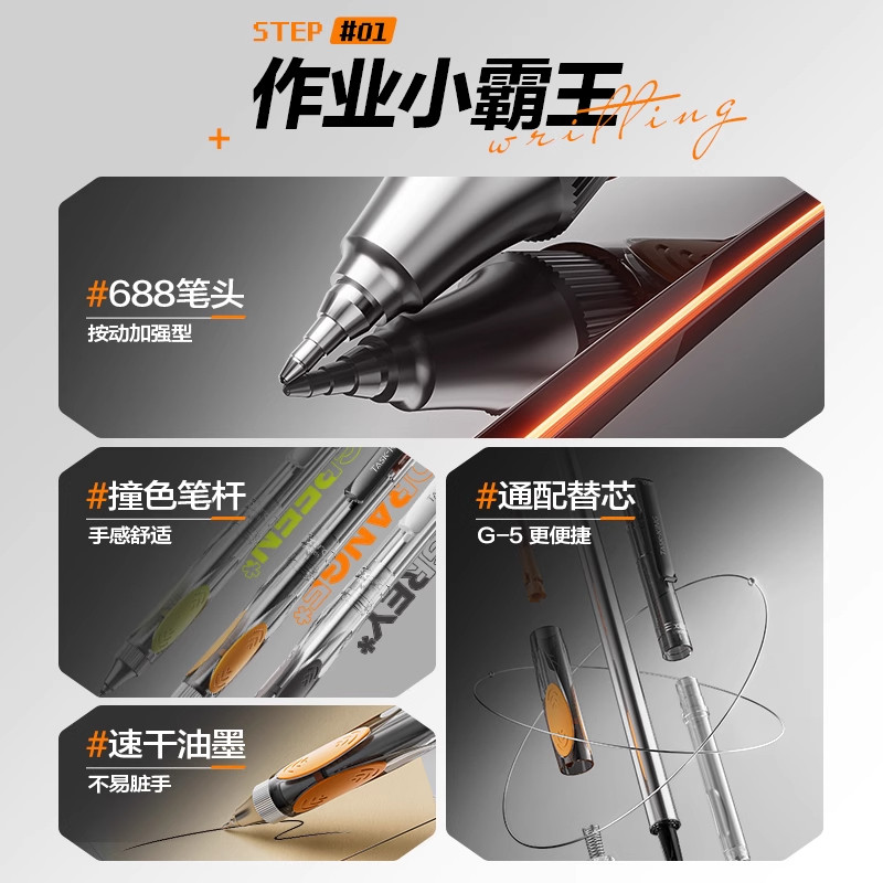 ST刷题笔高颜值按动中性笔圆珠笔黑色水笔小学生专用考试0.5速干碳素笔水性黑笔按压式做笔记签字笔非按斤卖