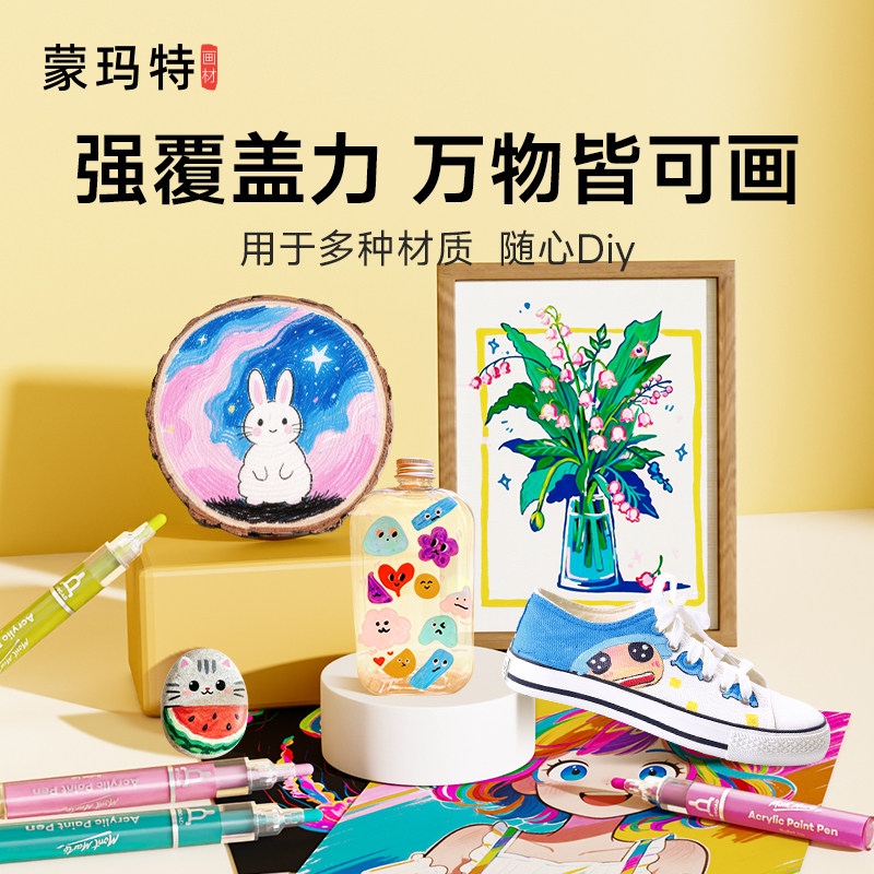 蒙玛特 丙烯马克笔套装DIY高达按压式补色笔画鞋防晒防晒速干儿童专用套装可选油漆笔海报广告画涂鸦颜料笔