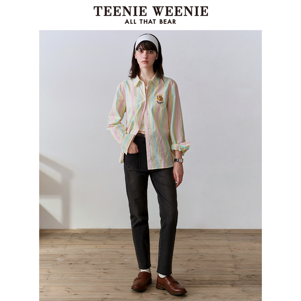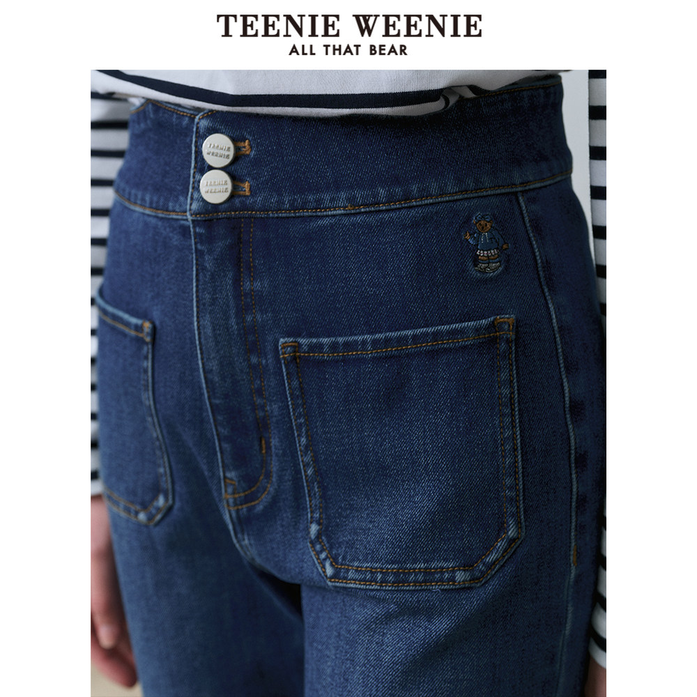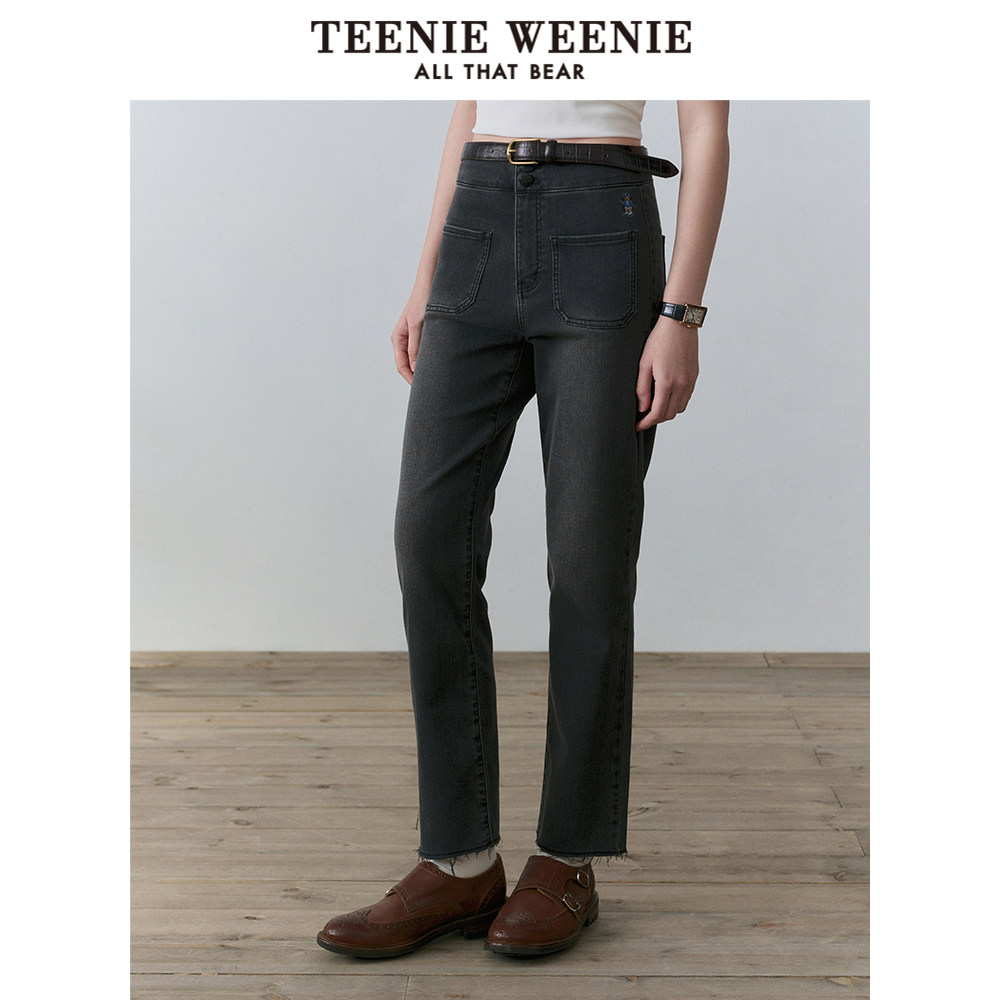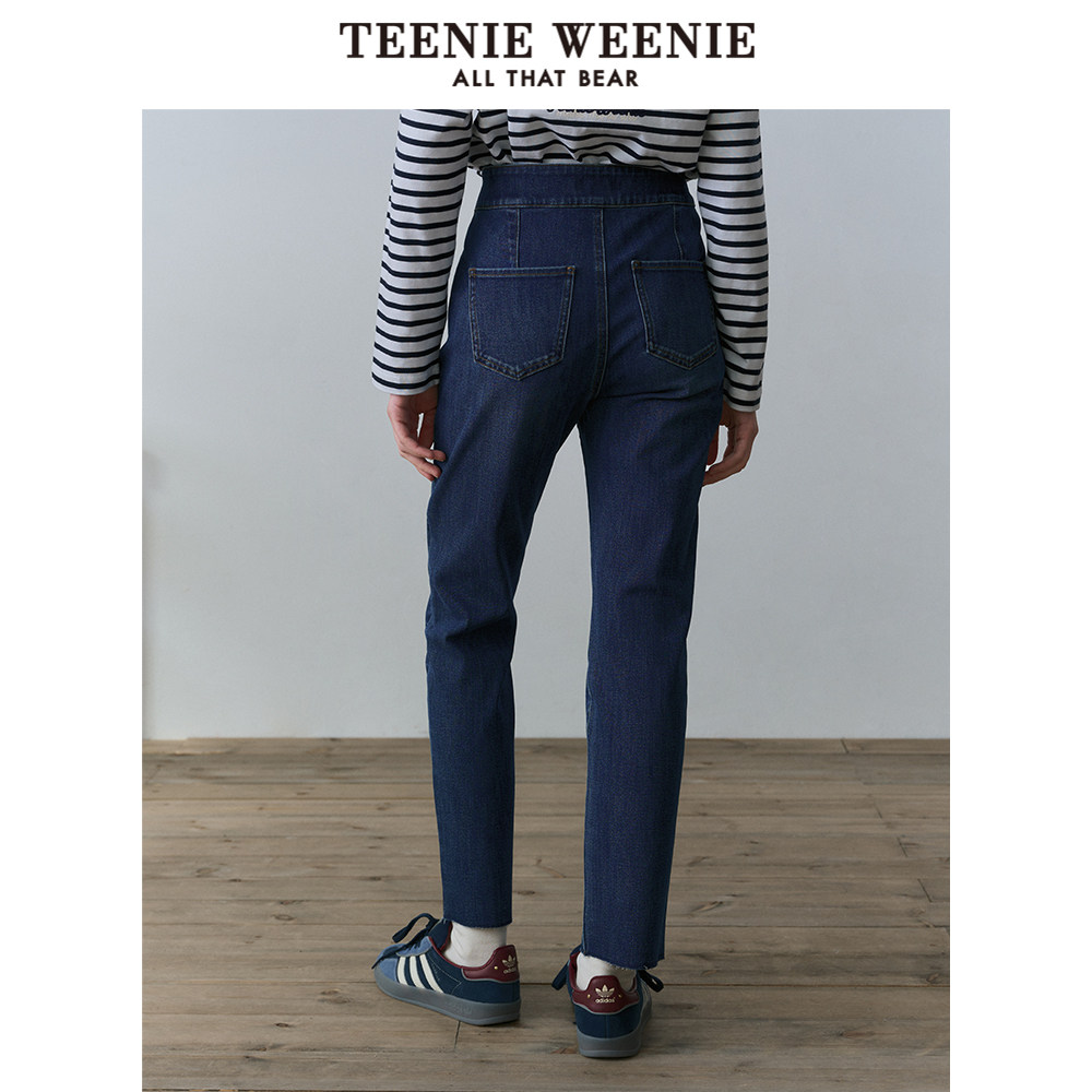 TeenieWeenie小熊奥莱复古牛仔裤长裤小脚裤黑色高腰铅笔裤