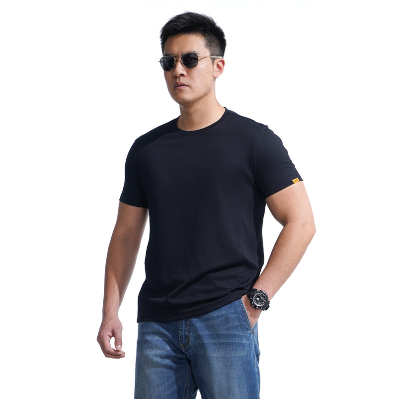 新疆长绒纯棉短袖t恤男士纯色宽松全棉半袖圆领汗衫简约百搭体恤