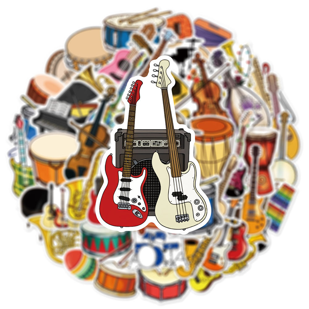 100张乐器涂鸦贴纸卡通小提琴唢呐钢琴琵琶创意装饰贴画防水自粘