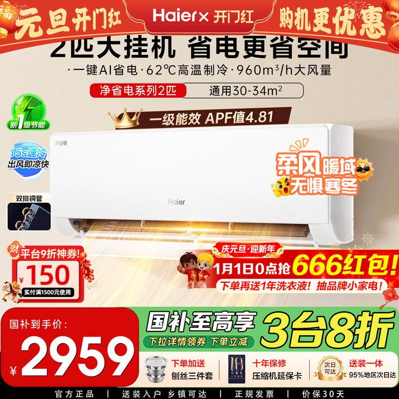 海尔空调净省电官方新一级能效2匹变频冷暖两用家用卧室挂机48E1