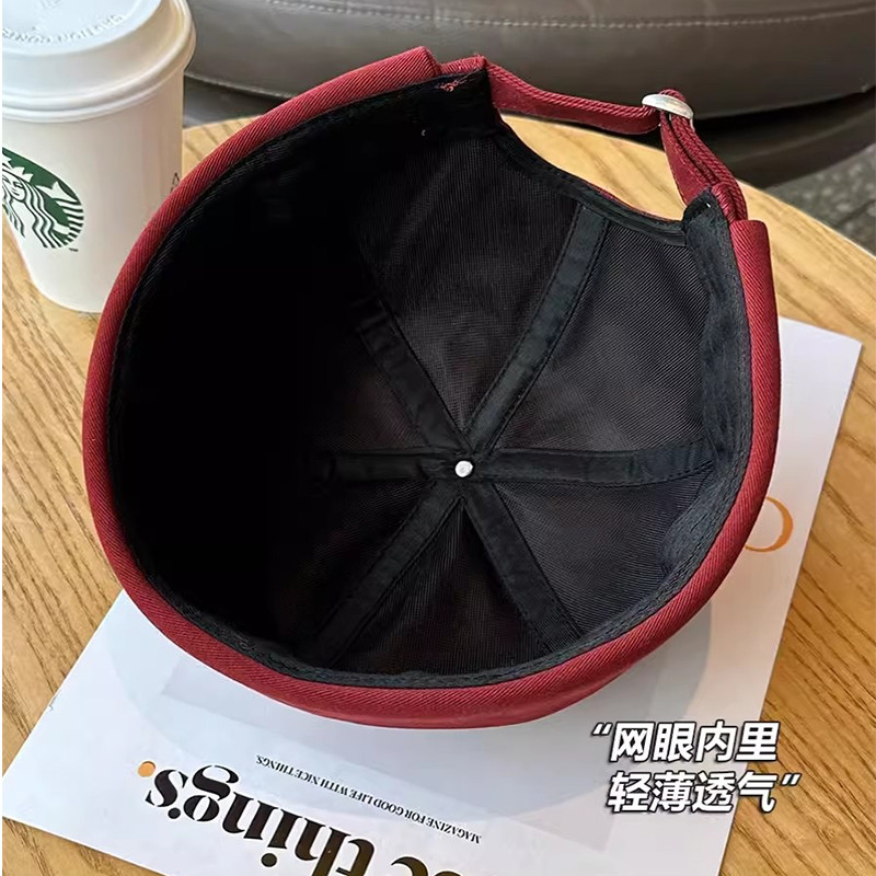 酒红色大头围帽子棒球帽大脸显脸小宽帽檐女加大加深顶红色鸭舌帽