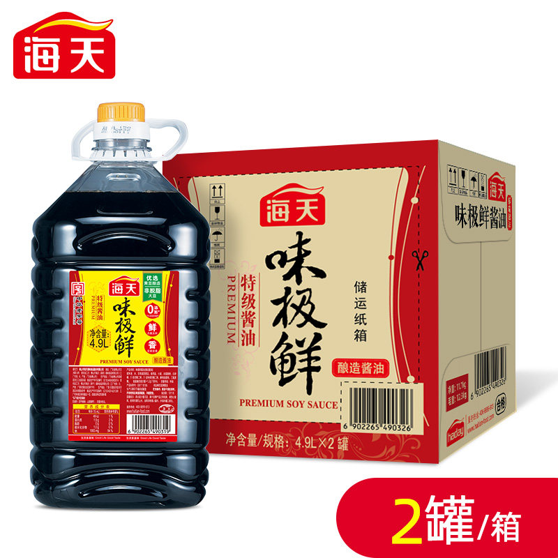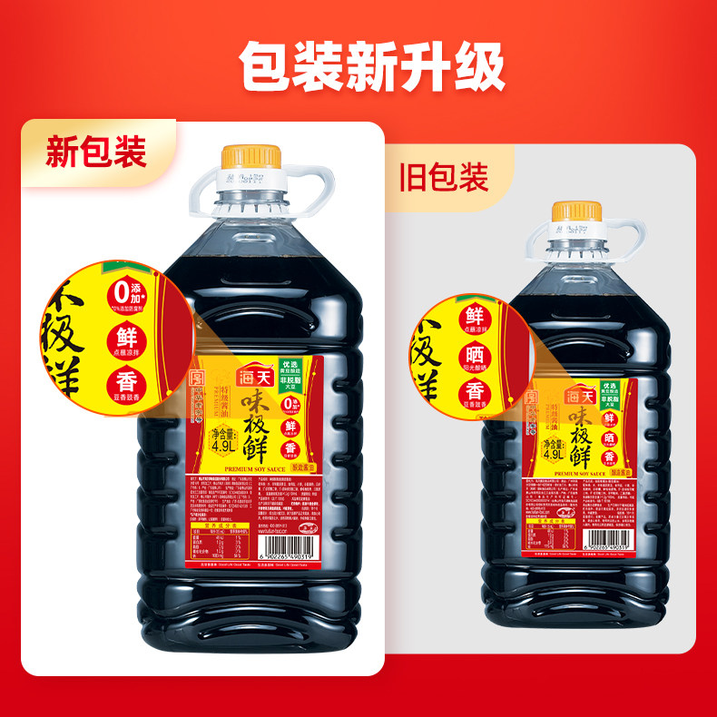 海天味极鲜4.9L 大桶商用餐饮调味清蒸提鲜特级酿造酱油 临期清仓