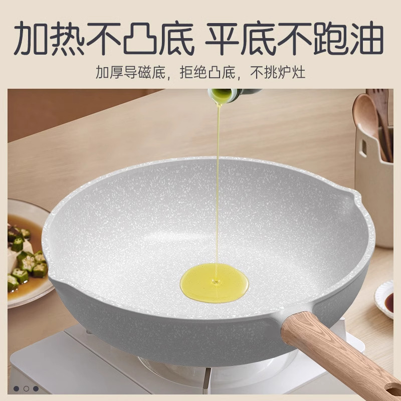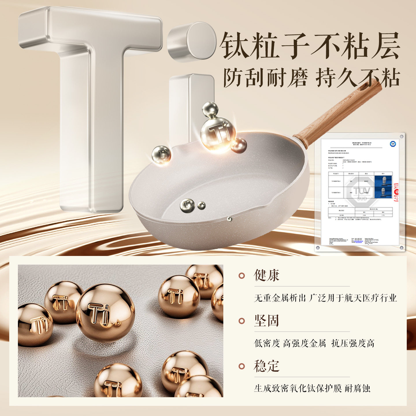 钛红芯控温平底锅不粘锅家用无涂层炒菜煎蛋牛排电磁炉专用深煎锅