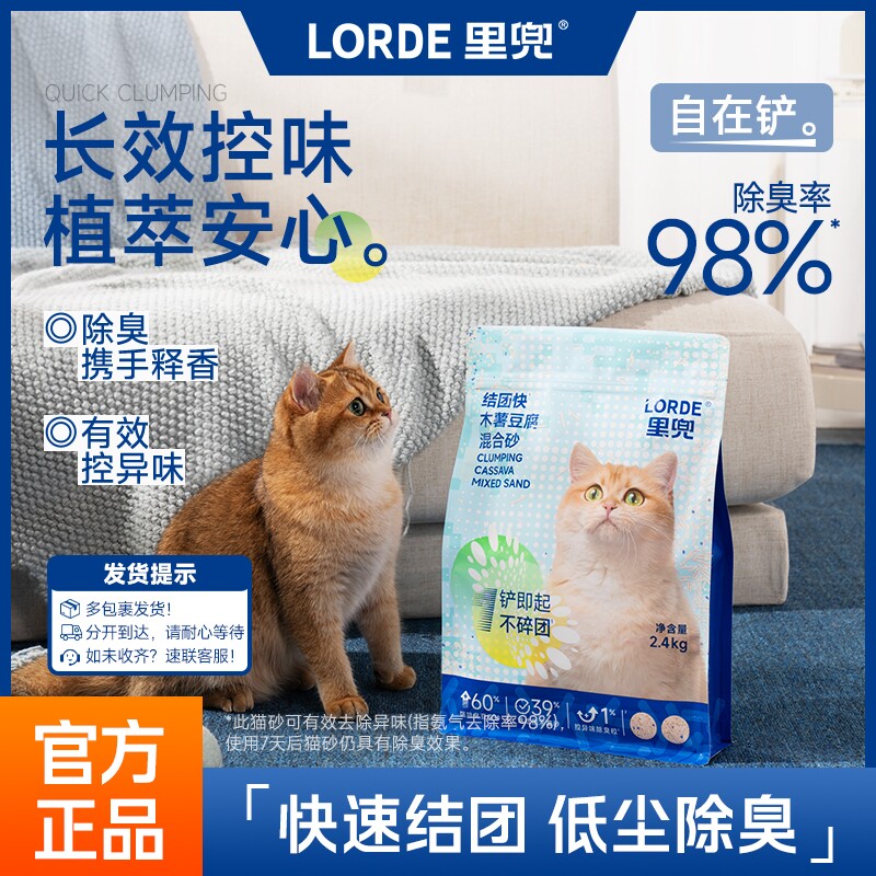 里兜lorde木薯豆腐混合猫砂秒结团除臭不粘底植物猫砂淀粉低尘8袋