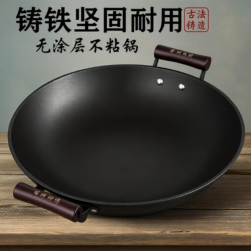 铁锅官方旗舰炒菜锅老式炒锅铁锅家用不粘锅无涂层燃气灶适用