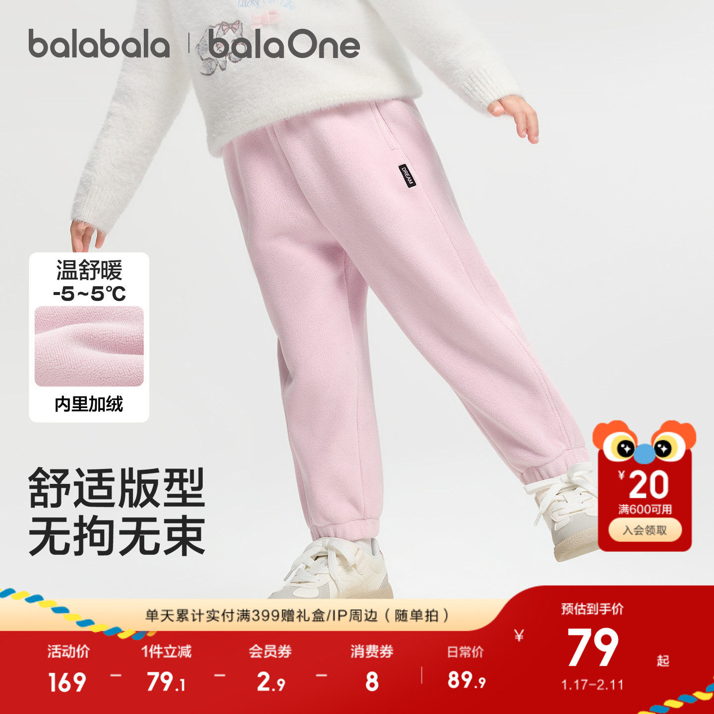 巴拉巴拉童装儿童加绒裤子男童2025秋冬新款女童防静电摇粒绒长裤