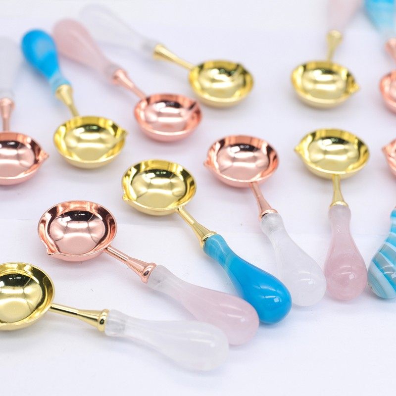 水晶火漆勺少女粉晶火漆蜡专用勺子小可爱火漆勺子封蜡加热工具
