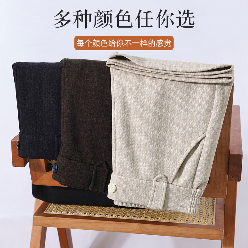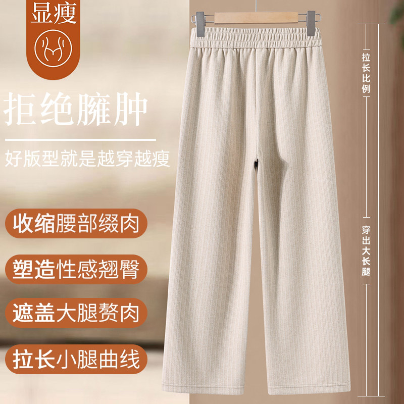 雅鹿妈妈裤子春秋洋气休闲裤中老年人秋冬女装显瘦直筒阔腿毛呢裤