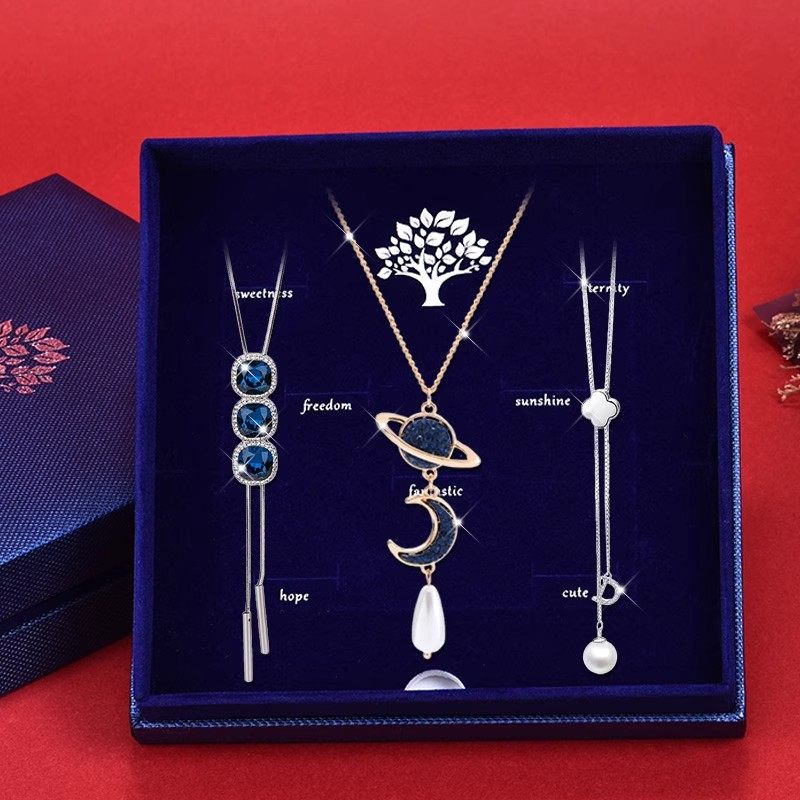 银色水滴吊坠项链女长款轻奢小众钛钢不掉色装饰毛衣链高级感配饰