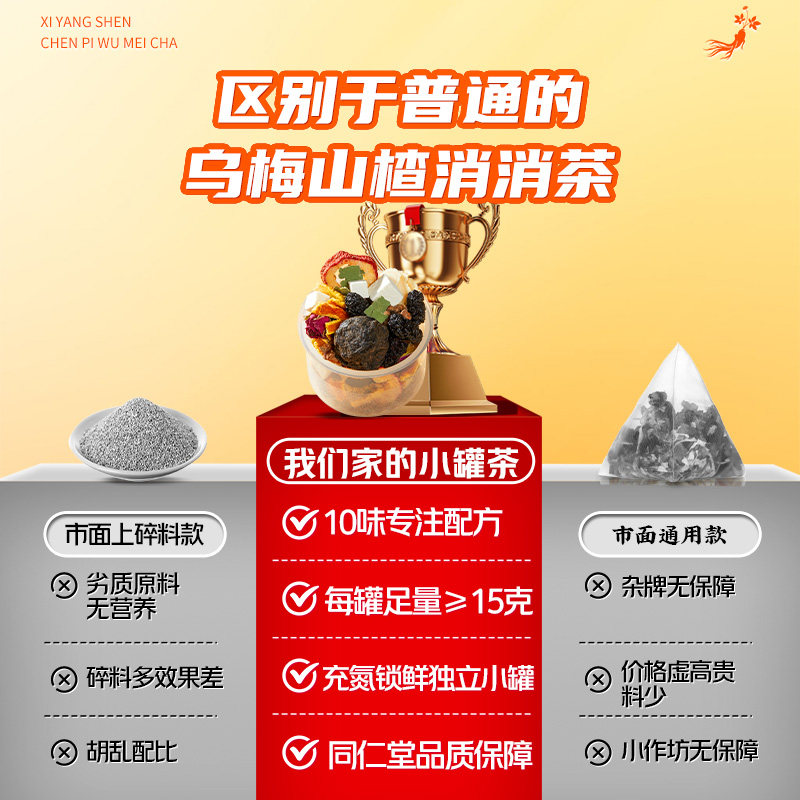 北京同仁堂乌梅山楂消消养生茶通三焦西洋参陈皮茯苓桑葚内廷上用