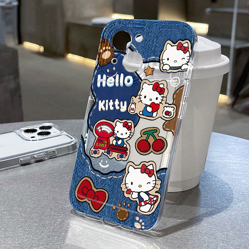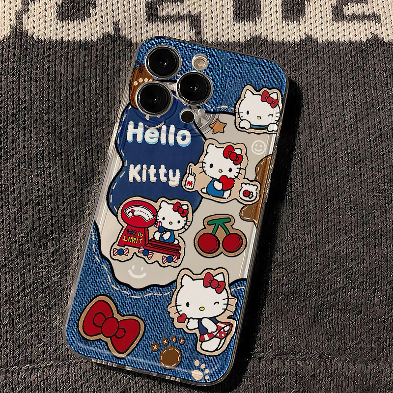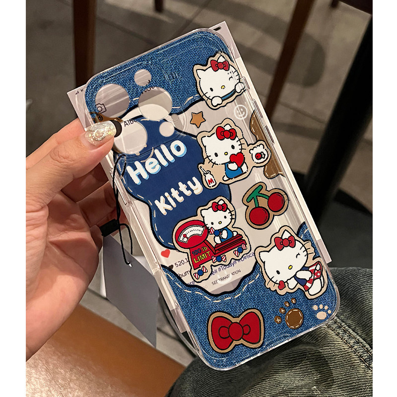 牛仔樱桃KT猫适用苹果16手机壳iPhone15promax新款13华为mate60红米卡通p70小米14软壳vivoo荣耀oppo防摔k70
