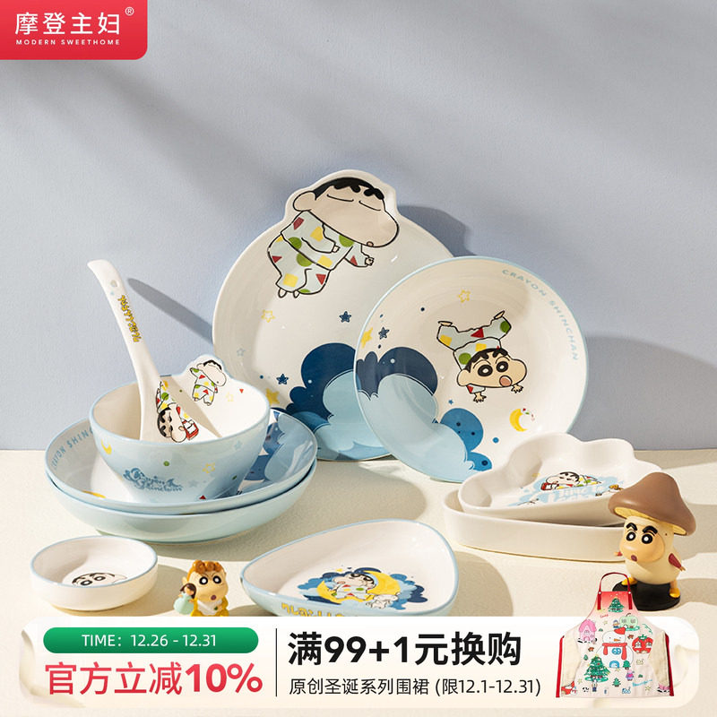 【摩登主妇&蜡笔小新联名】碗具套装菜碟家用陶瓷可爱儿童饭碗盘