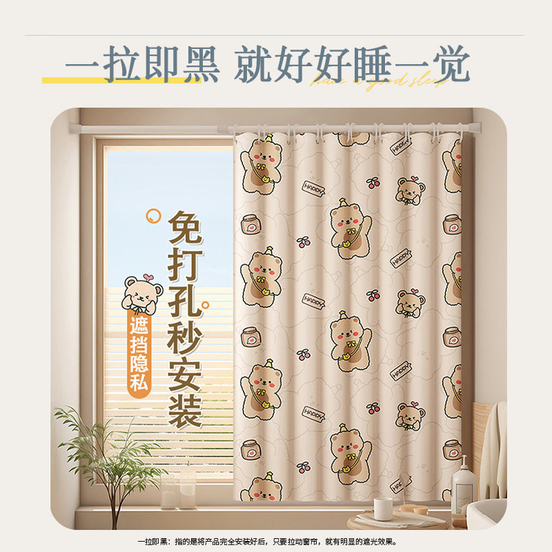 免打孔安装窗帘遮光护隔断帘卧室门帘新款帘窗户遮阳隐私隔热伸缩