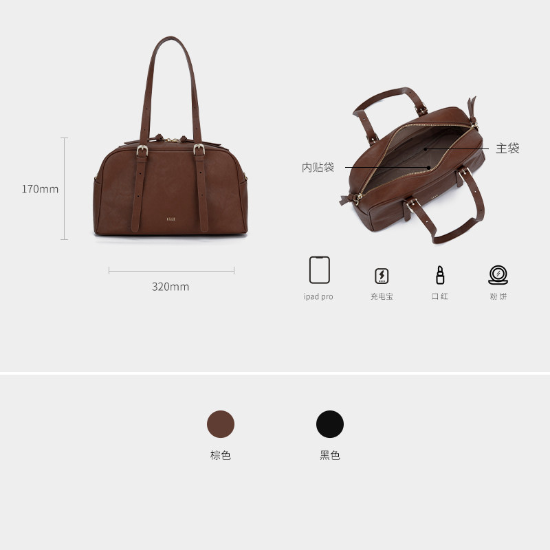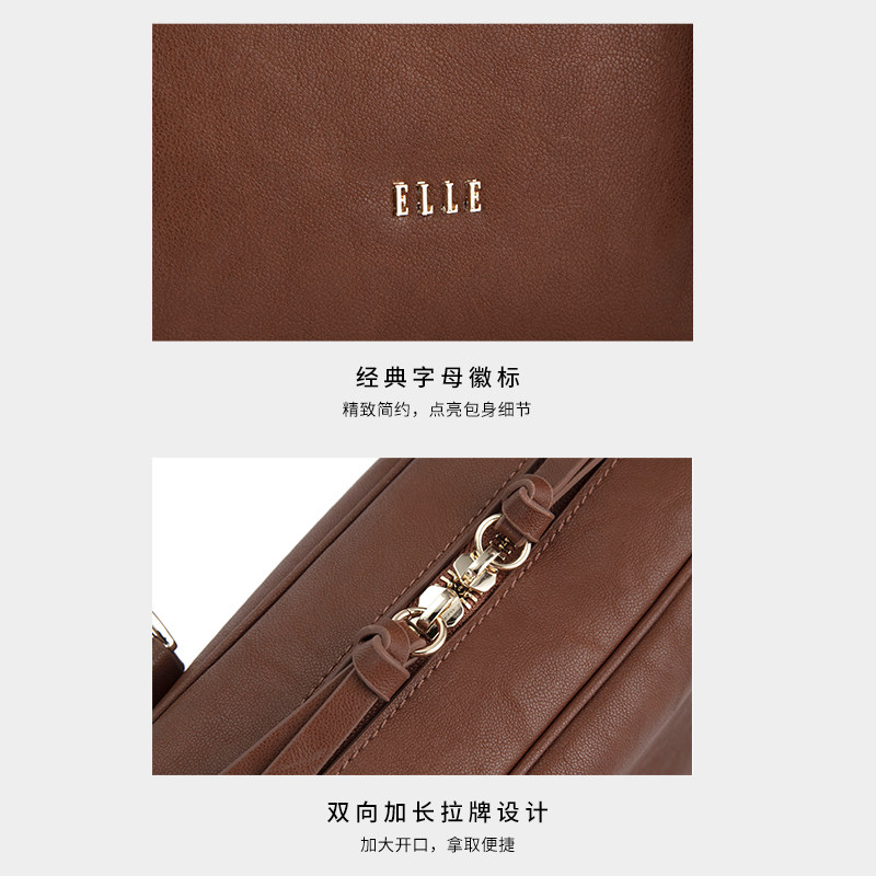 ELLE女包2025新款植鞣单肩斜挎波士顿包单肩高级感通勤手提包
