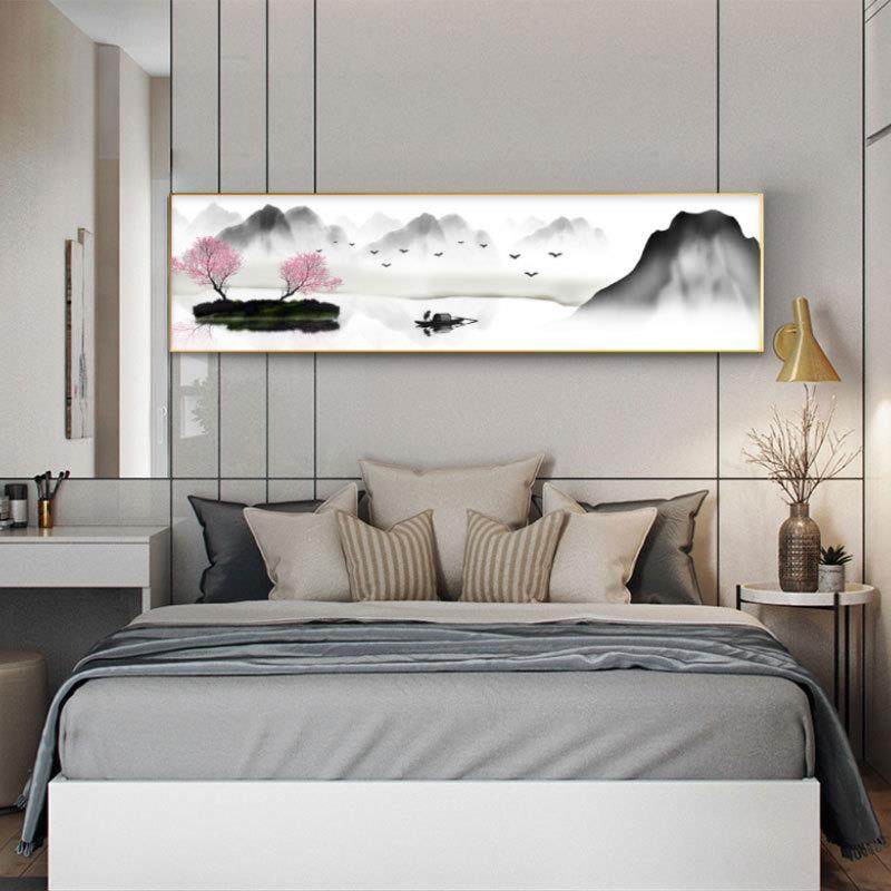 酒店床头装饰画厂家样板间中式布艺画 宾馆卧室免打孔挂画