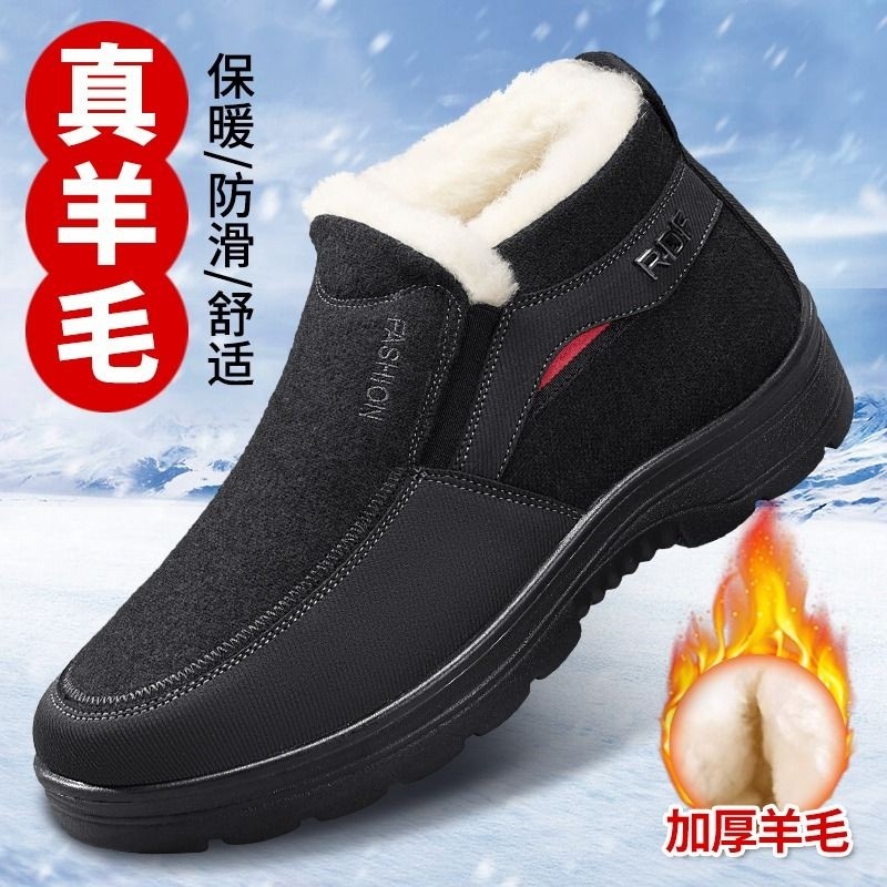 老北京布鞋男冬加绒加厚爸爸鞋防滑软底保暖中老年一脚蹬老人棉鞋