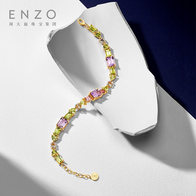 ENZO 18K金多彩宝石薰衣草紫晶橄榄石手链女新春礼物
