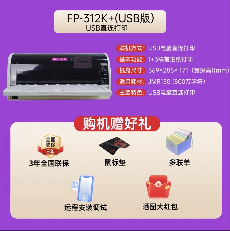 映美FP-312K/630k+针式打印机无线WIFI蓝牙管家婆手机版、易指开单进销存软件票据凭证24针平推82列
