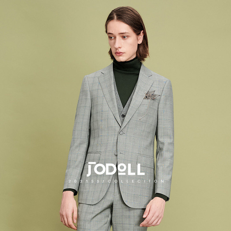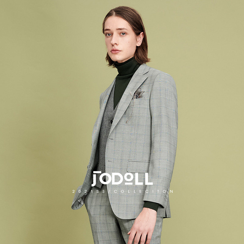 JODOLL乔顿【意大利进口面料】男绵羊毛商务正装修身格子西服套装