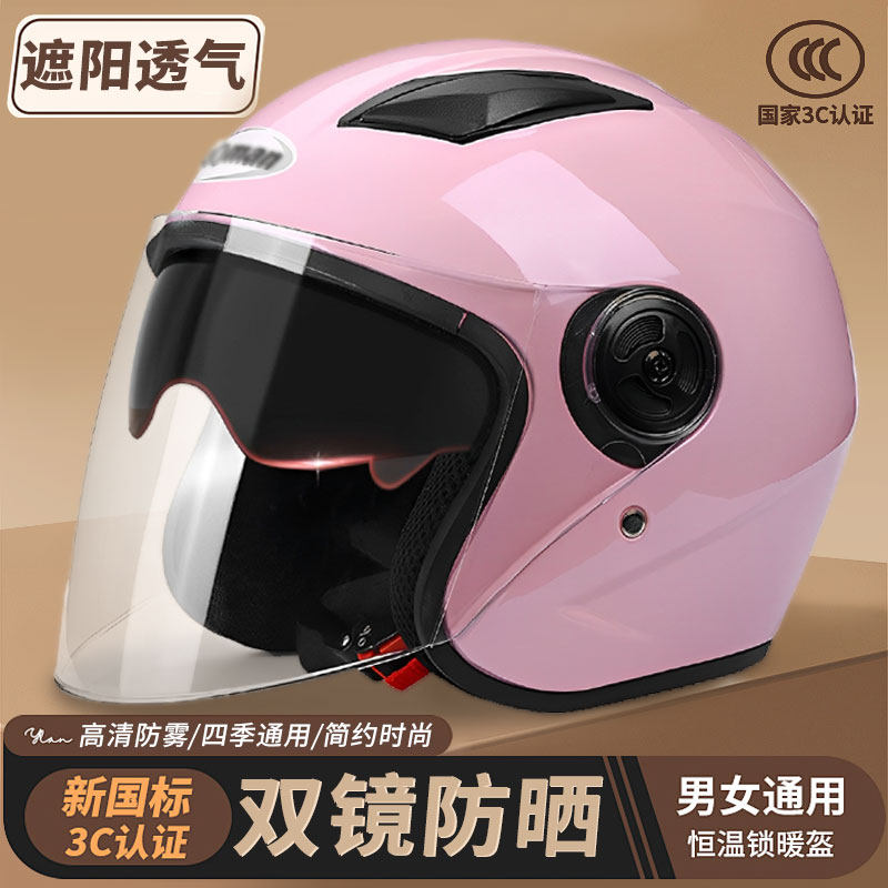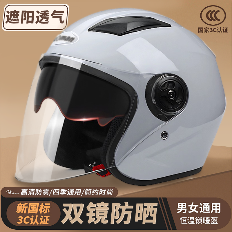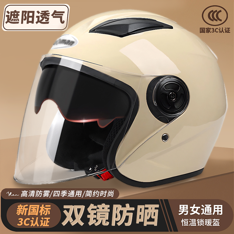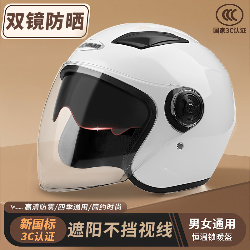 野马3C认证新国标电动摩托车头盔夏季防晒双镜男女半盔四季安全帽