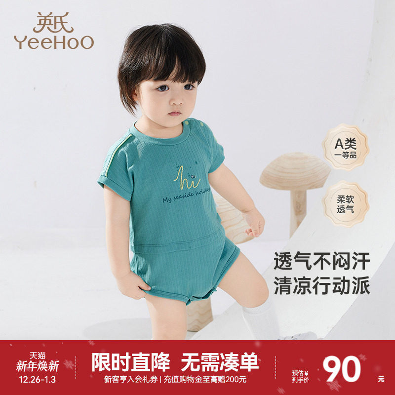 【商场同款】英氏新生儿连体衣夏季男宝宝新款包屁衣婴儿衣服