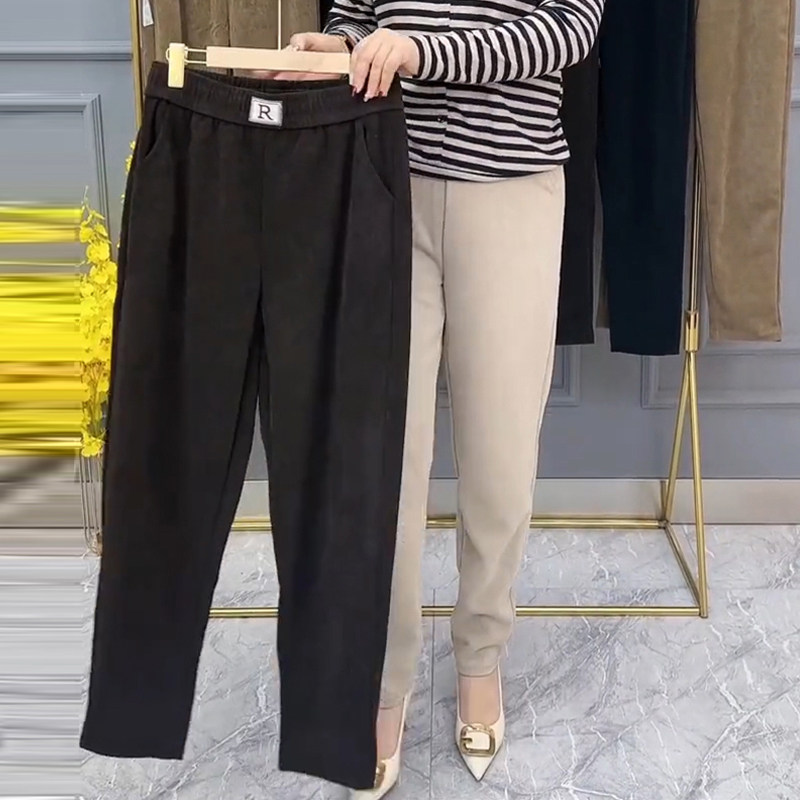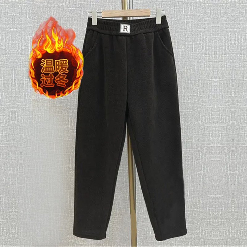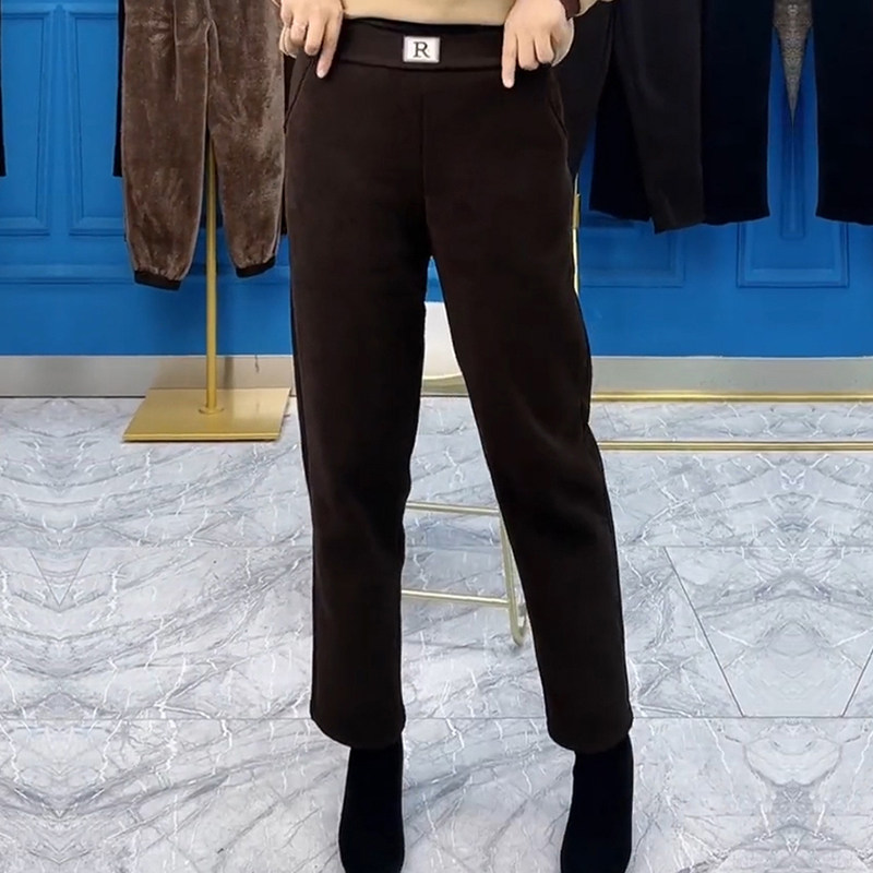 2025秋冬加绒加厚裤子松紧腰雪尼尔长裤直筒休闲中老年女装妈妈裤