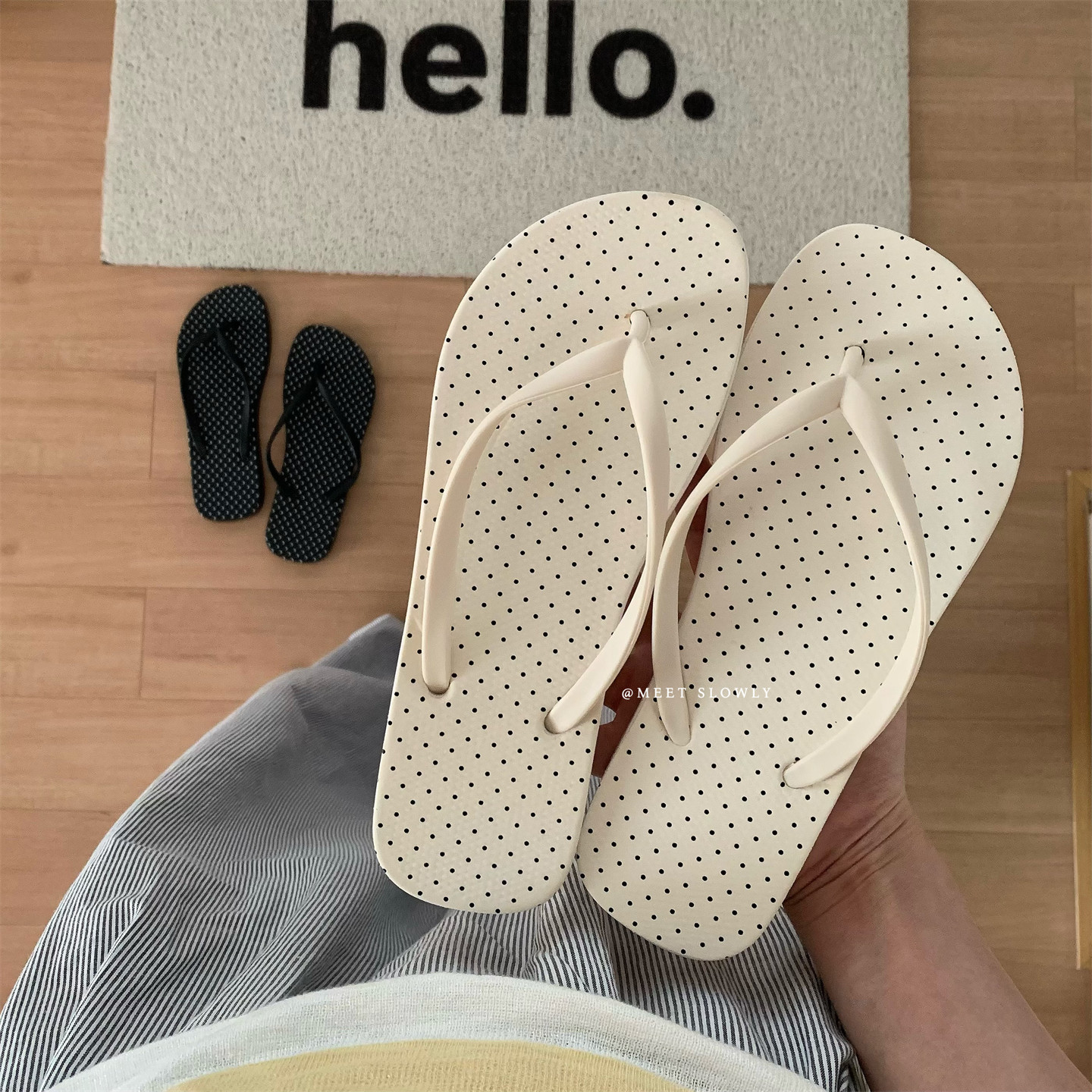 细细条 韩系小波点人字拖女ins海边度假休闲平底防滑夏季夹脚凉拖