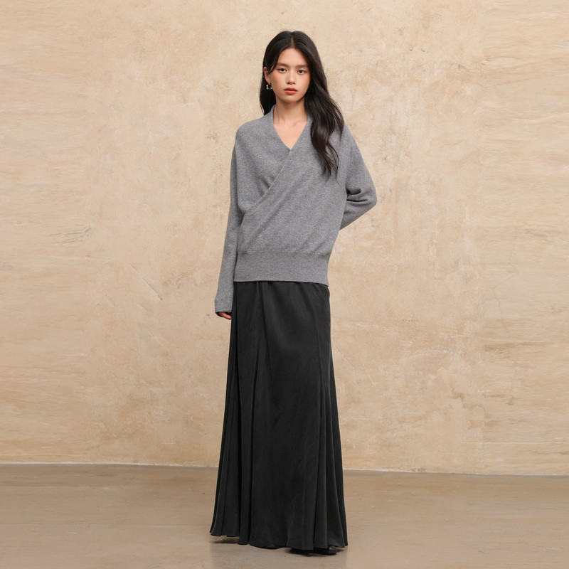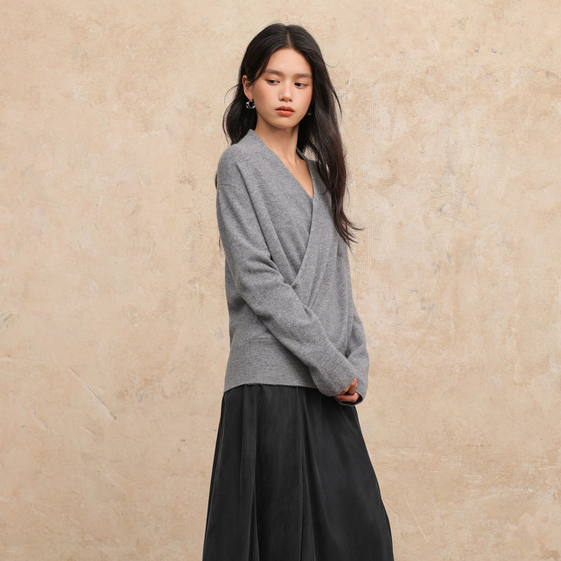 AIRIQI春季新款温柔感软糯交叉V领设计感全羊毛针织衫女AH53MS361
