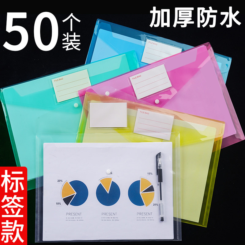 50个加厚a4带标签文件袋透明塑料大容量档案按扣式纽扣袋子资料收纳文件夹袋办公用品学生文具包防水票据袋