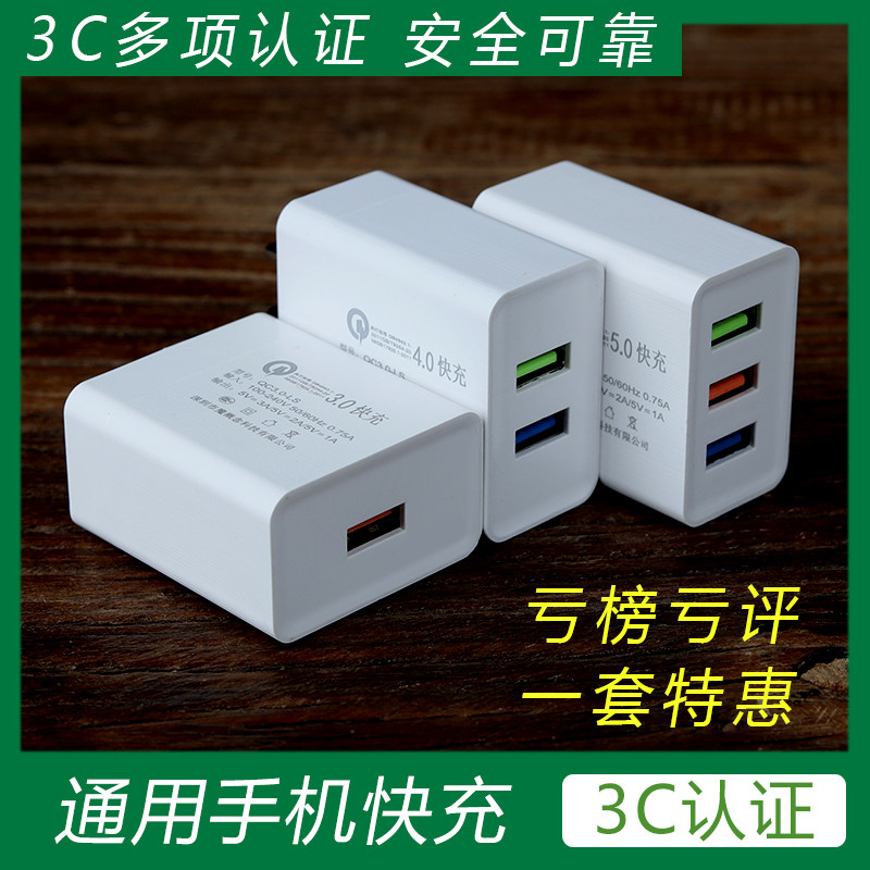 手机快充充电器3口安卓闪充通用华为小米多USB插头VIVOOPPO数据线