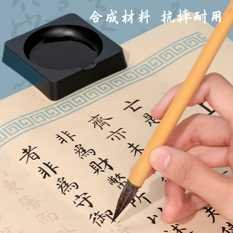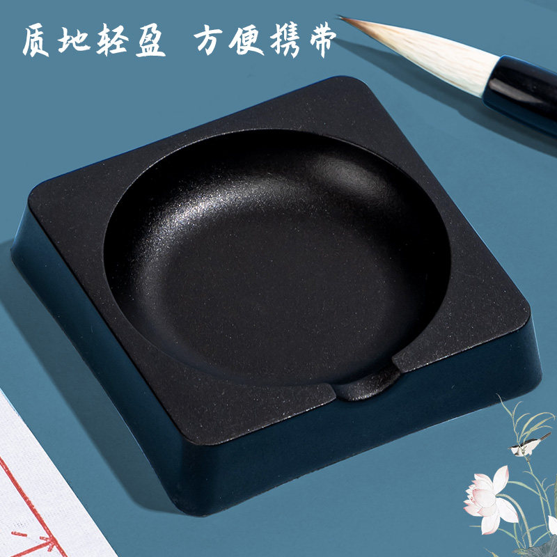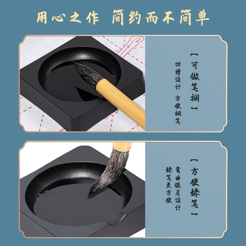 得力砚台文房四宝端砚墨碟墨池砚池墨盘墨汁盒砚毛笔墨盒火锅原石天然石砚学生墨汁盒书法成人初学者学生专用